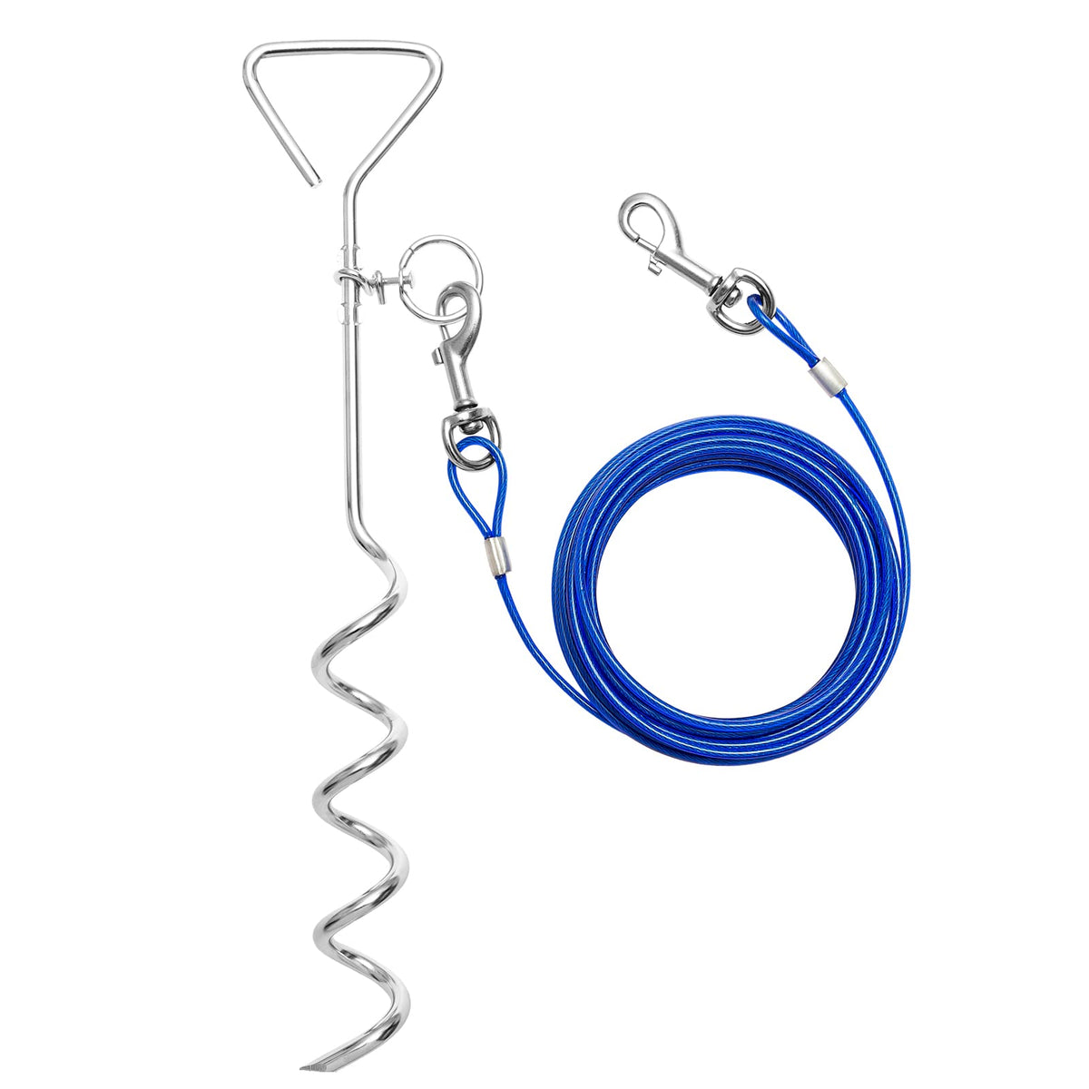 Bingpet Dog Tie Out Cable And Stake,25Ft Long Dog Leads&Chain For Yard,Camping And Outdoors Heavy Duty,16' Anti Rust Spiral Dog Tie Out Stake,No Tangle Dog Runner For Small To Medium Dogs(Blue)