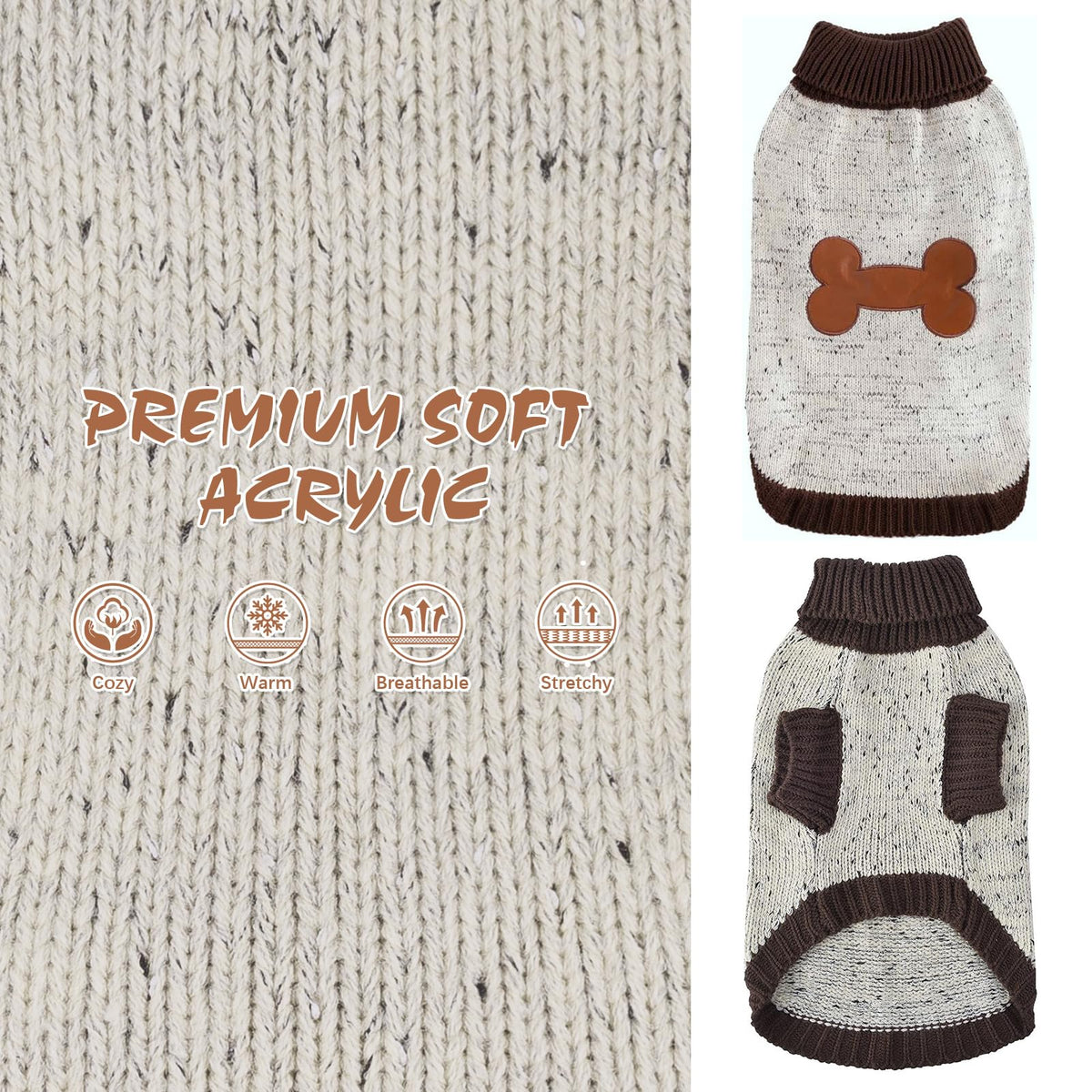 [NICE MATERIAL]: Made of quality acrylic well made stretchable and warm give your pet enough warmth while allowing it to move freely. Our sweater is ultra soft and perfect to protect the skin of your pet. You will be thrilled when you touch the soft lightweight dog sweater.