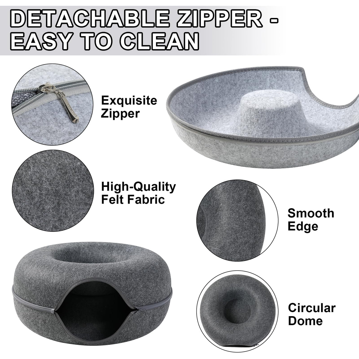 Bininl Cat Tunnel,Peekaboo Cat Cave Bed For Indoor Cats,Bininl Cat Donut Tunnel For Pet Cat House,Detachable Round Cat Felt & Washable Interior Cat Play Tunnel(20 Inch, Dark Grey)