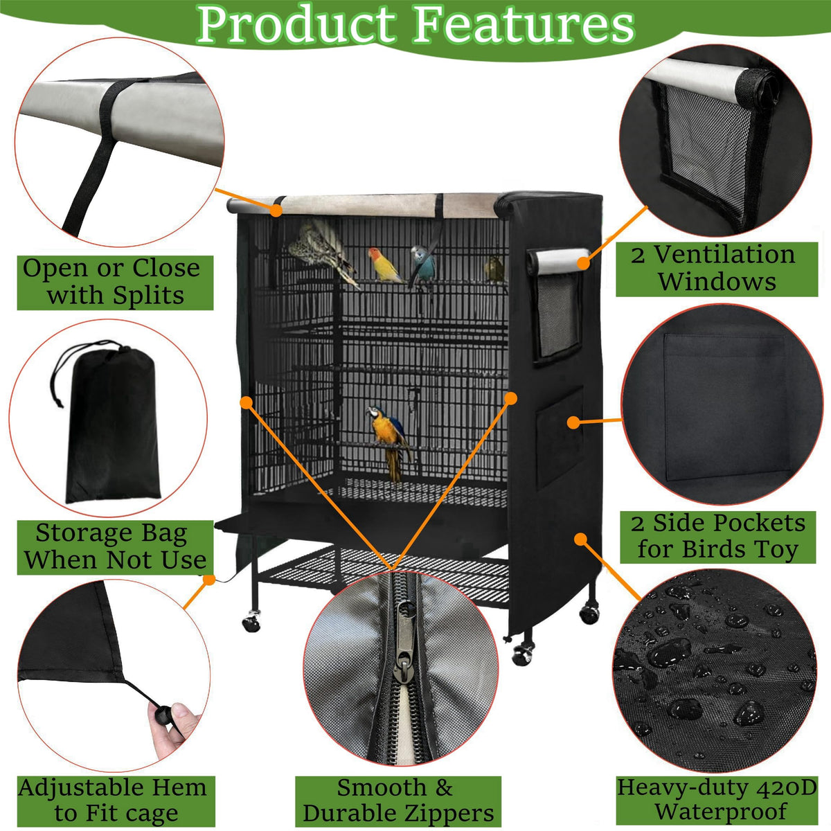 Bird Cage Cover Good Night for Medium Bird Cage with Zipper, Bird Universal Pet Cage Cover Good Night for Cats, Mink, Totoro, Pa