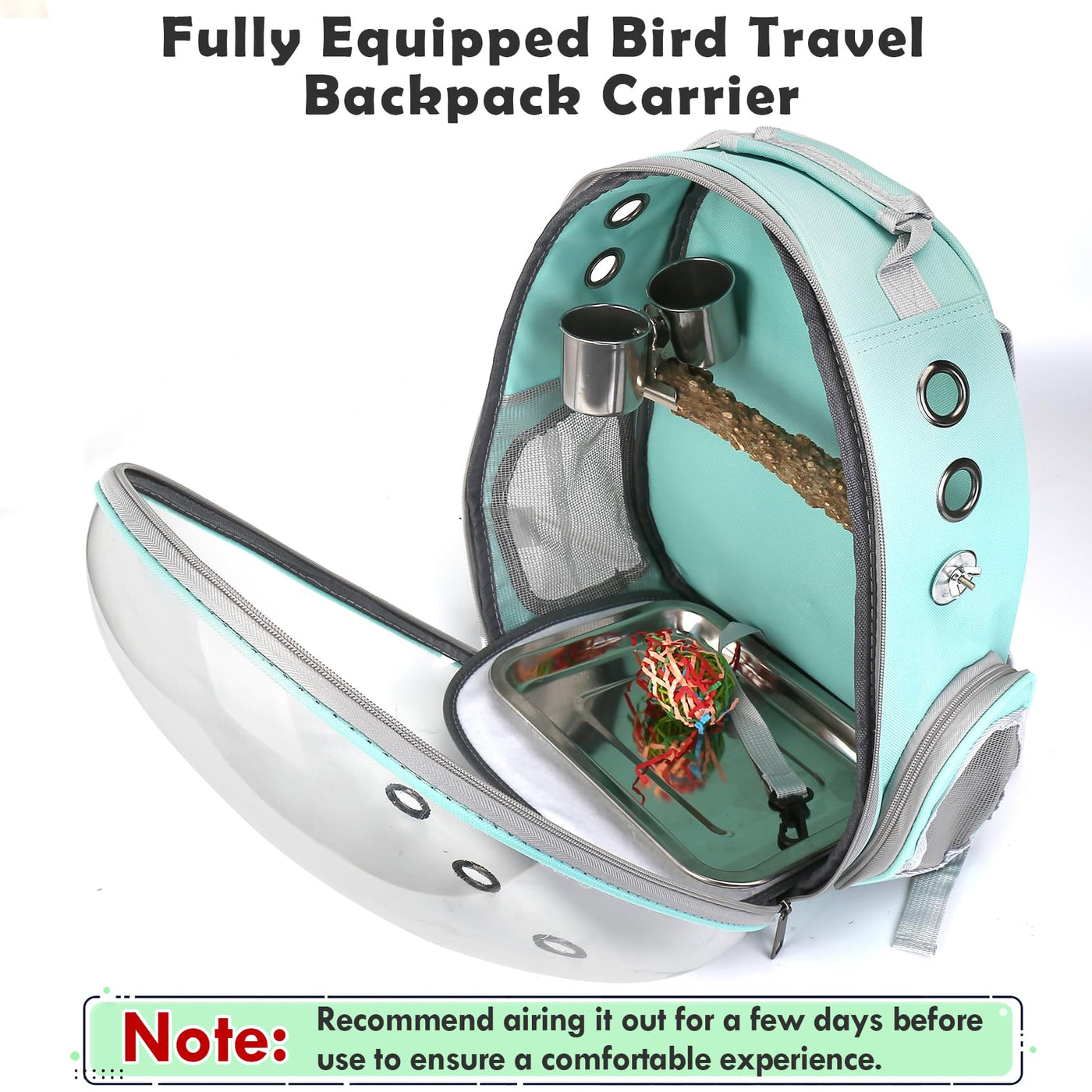 Bird Carrier Backpack Travel Cage with Perch, Breathable Clear Parrot Cockatiel Cage with Toy Stainless Steel Food Bowl Tray for