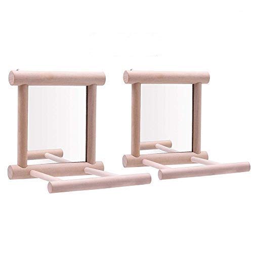 Bird Mirror Wooden Hanging Swing Interactive Play Toys For Small Parrot Budgies Macaw African Grey Parakeet Cockatiel Conure Lovebird Cage Accessories (Bird Mirror Perch Stand-2 Pcs)
