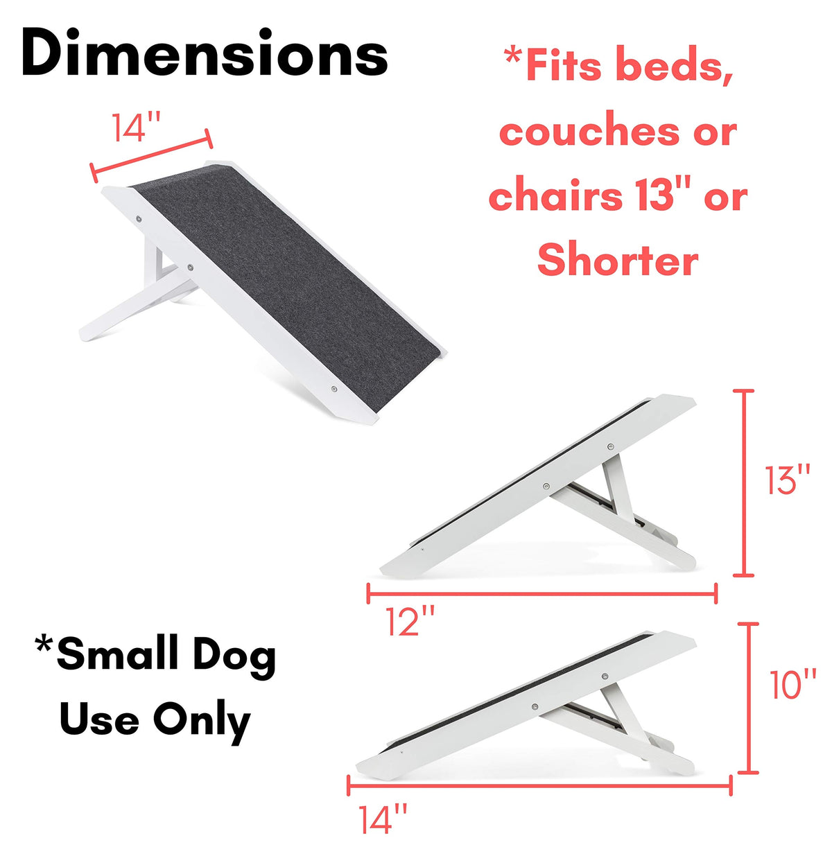 Birdrock Home Adjustable Dog Ramp For Low Beds Or Couches - Small Dogs Or Cats Only - Decorative Wooden Folding Doggie Ramps - Paw Friendly Grip Carpet - White 13'
