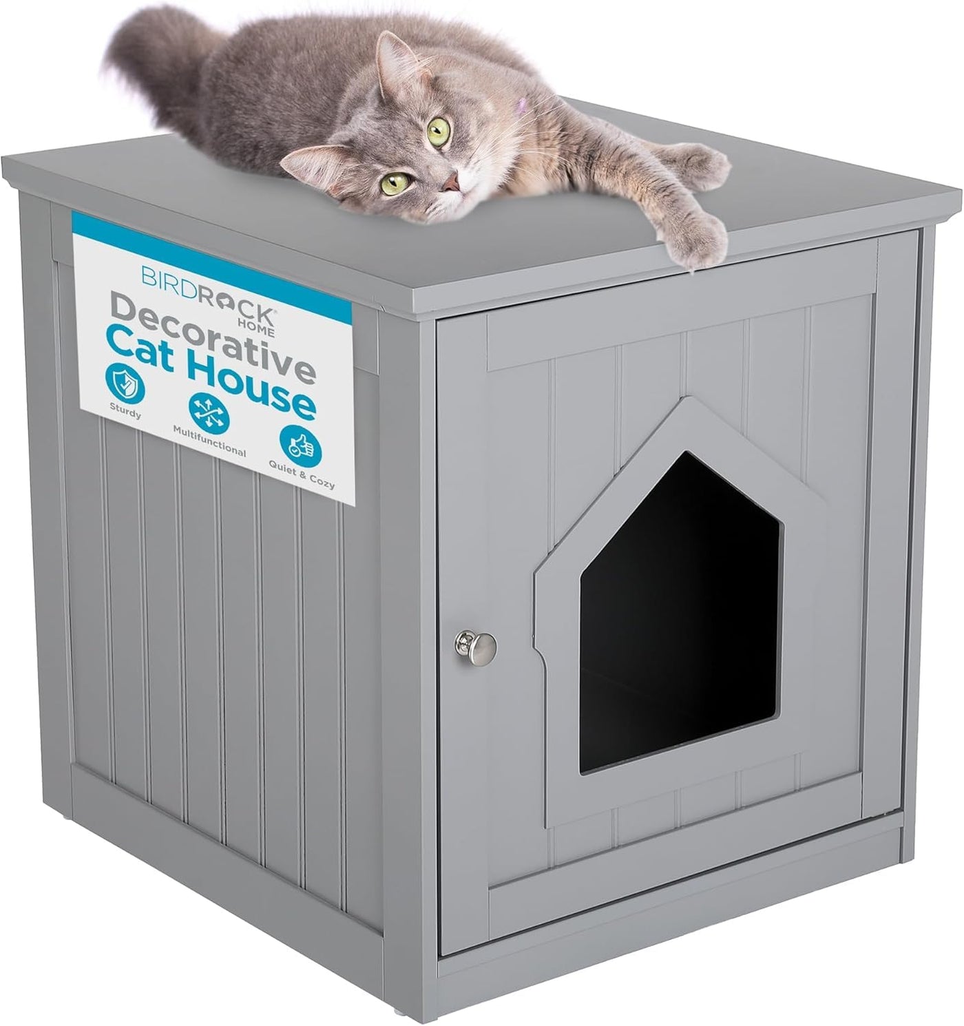 Birdrock Home Cat Litter Box Furniture Enclosure - Hidden Kitty Litter Cat House With Hinged Door, Nightstand, Side Table & Pet