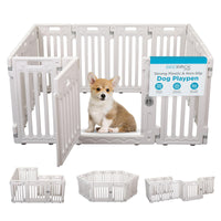 The BIRDROCK HOME Dog Playpen with Door is ideal for small to medium pets, offering a versatile and secure enclosure. With 12 pre-assembled plastic panels, it easily adjusts to fit any indoor or outdoor area. The playpen features a tall, 25.6-inch height, secure external door lock, and non-slip design with suction cups, ensuring stability on smooth surfaces. Ideal for puppies, doggies, and other pets, the neutral white color blends seamlessly with home decor. This configurable pet fence is perfect for creating a safe play area in your yard or indoors, providing peace of mind for pet owners.