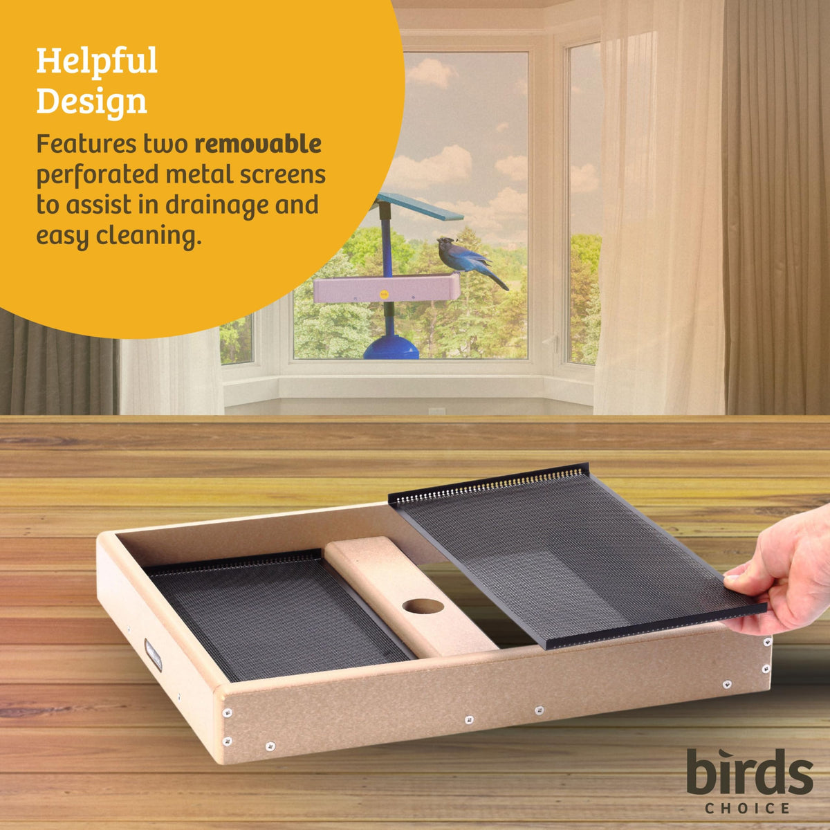 Birds Choice SNSC Platform Feeder, Recycled Pole Mount Seed Catcher Platform w/ Two Removable Seed Trays, Medium, Taupe