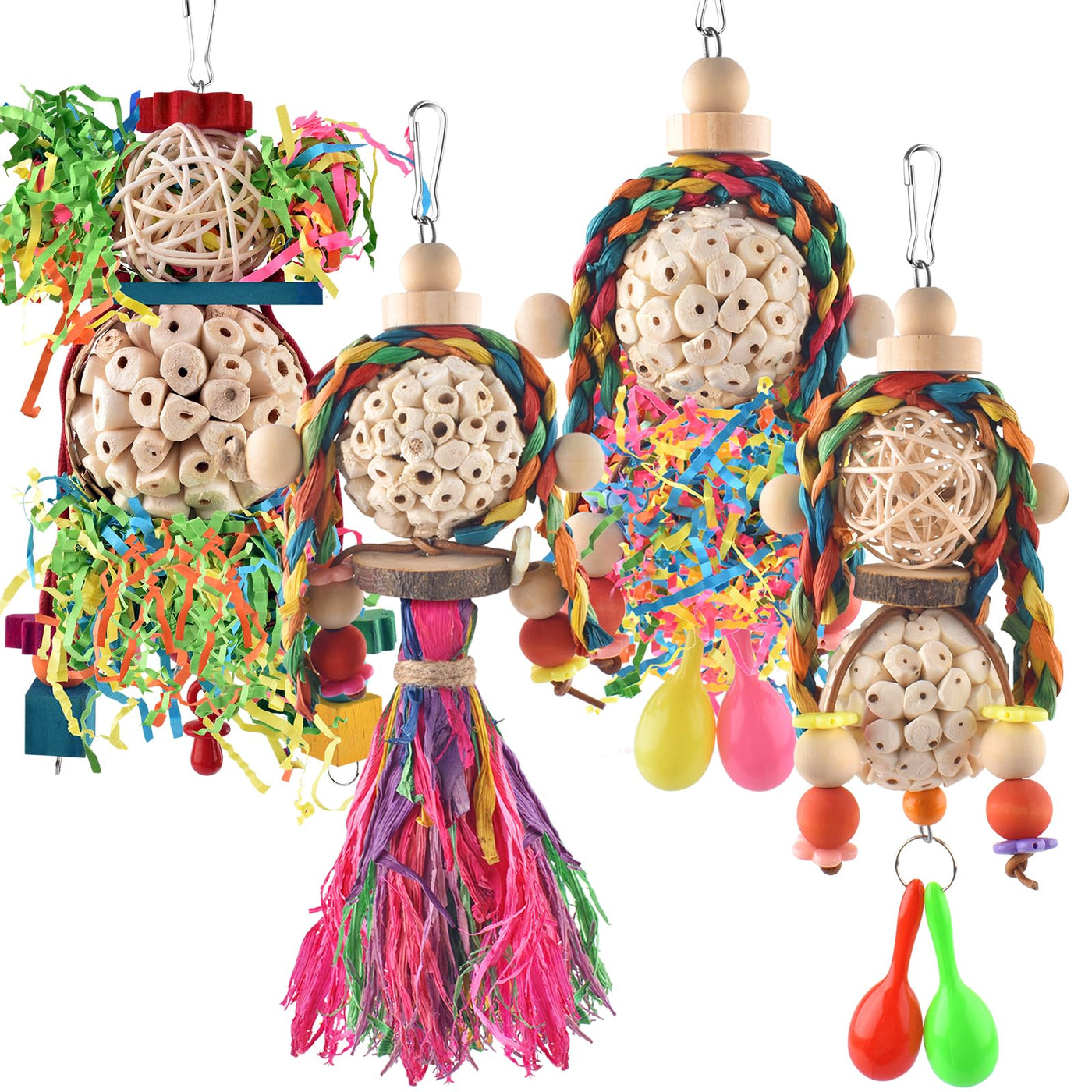 Bissap Conure Toys, 4 Pcs Bird Parrot Foraging Shredder Hanging Toys Sola Balls With Sand Hammer For Small Parrots Parakeets Con