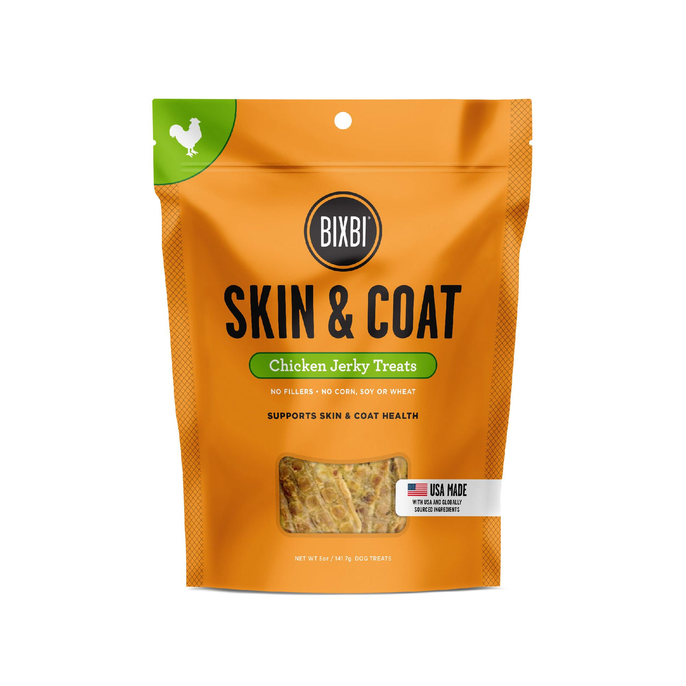 Product DescriptionTalk about a great hair day! BIXBI Skin & Coat Support Chicken Jerky Treats are made proudly in the United States of America with free-range chicken and loaded with naturally enriching whole foods that help support shiny, full-bodied coats and healthy skin. Packed with antioxidants, vitamins and minerals, these jerky treats for dogs provide protein-rich nutrition that will have your dog looking great and feeling even better. Its the kind of grooming ritual your dog will eat right up! Meat from chickens is highly digestible, palatable and a lean protein source. These dog jerky treats are also made with sweet potato and rosemary extract. Sweet potato is high in fiber and rich in phytonutrients such as beta-carotene. Rosemary extract is used as a natural flavor enhancer and also has antioxidant properties. BIXBI Pet guarantees our products for quality and freshness. Be advised, we cannot guarantee any products sold by non-authorized third-party sellers.Manufacturers Noticehttp://www.fda.gov/Safety/Recalls/ucm340337.htmManufacturer Remedy Informationhttp://www.fda.gov/Safety/Recalls/ucm340337.htm