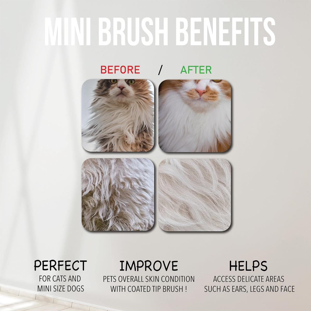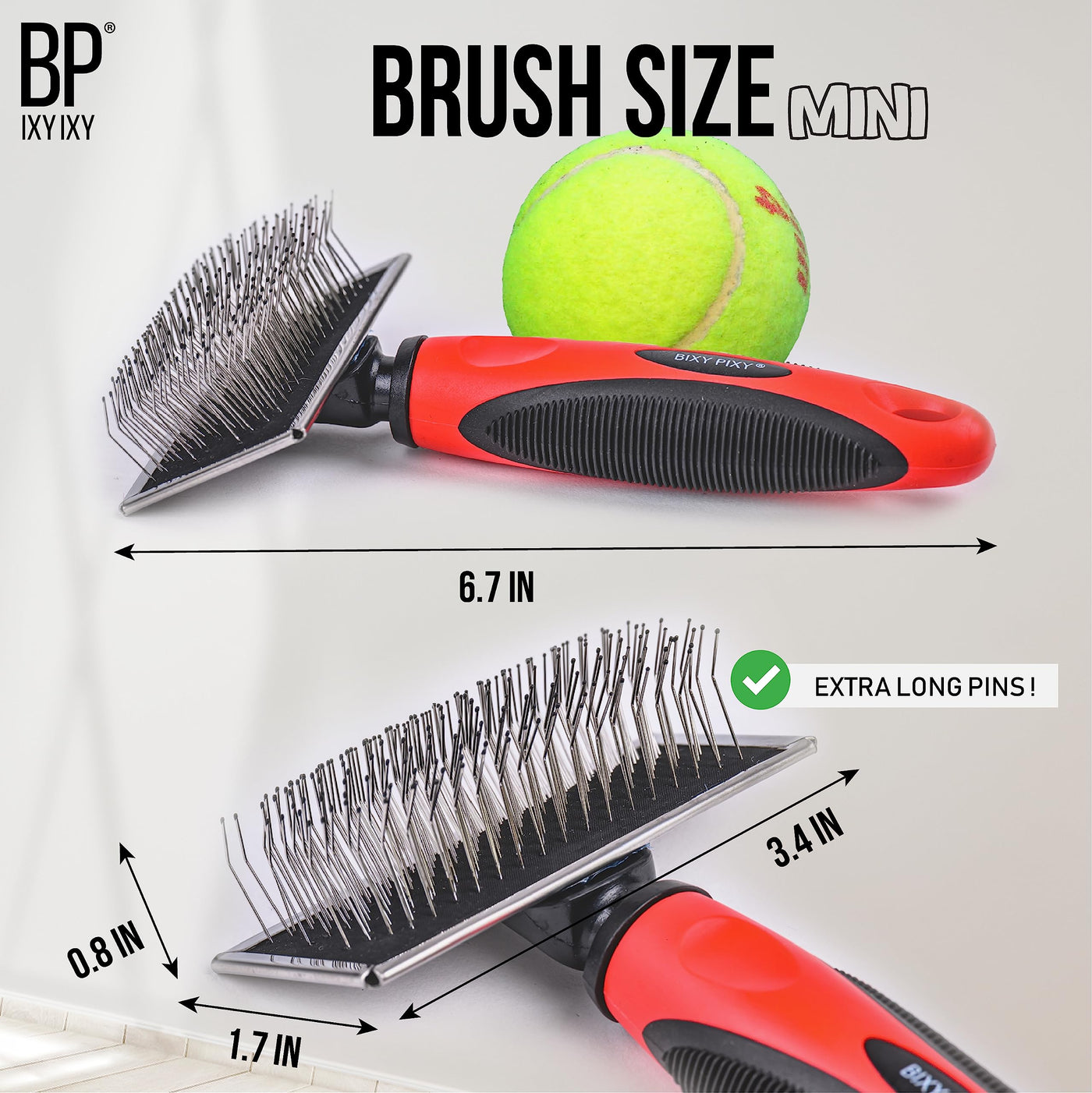 Bixy Pixy Mini Brush For Dogs And Cats - Coated Tips Massage Skin - Long Pins Remove Mats, Tangles In Long And Poodle Fur