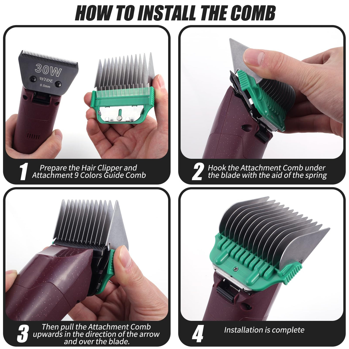 Black 10W/15W/30W Wide Clipper Blade & Dog Stainless Steel Wide Clipper Attachment Guard Comb Set For A5 Series | Snap-On/Off De