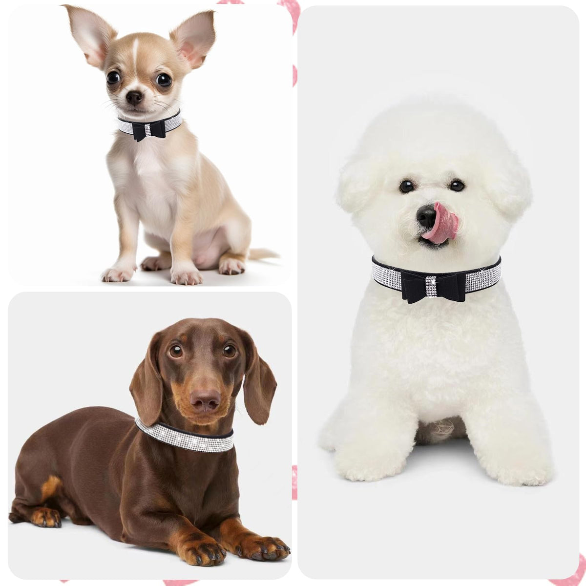 Black Bling Dog Collars For Small Dogs, 2-Pack Rhinestone Dog Collar Soft Suede Glitter Diamond Jewelry Crystal Girl Puppy Colla
