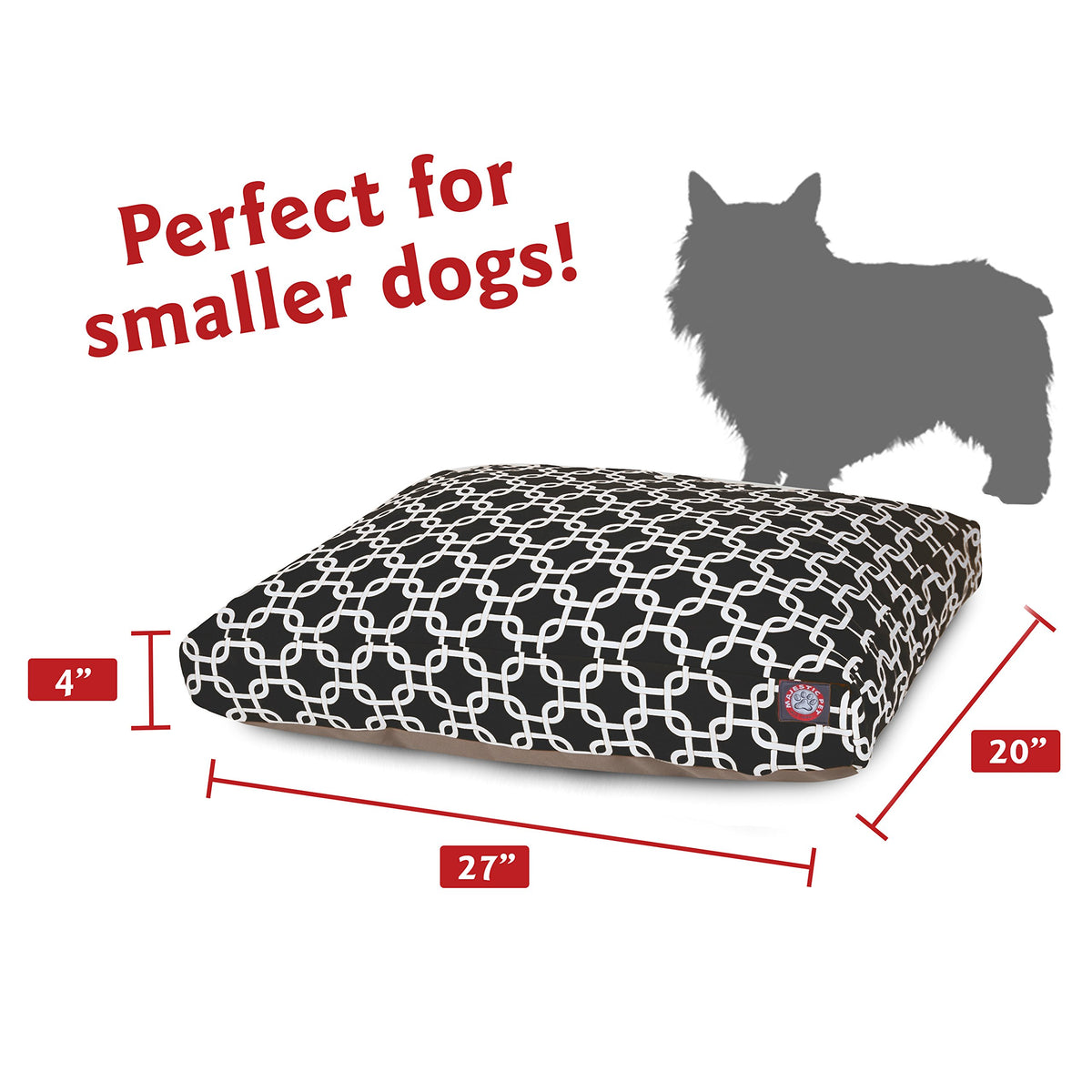 Majestic Pet Product 27' X 20' Small Links Rectangle Dog Beddimensions: 27'L X 20'Wcushion: 4'Houtside Material:Outdoor-Treated Polyesterinside Material: Premium High Loft Polyester Fiber Filwashing Instructions: Place Slipcover Into Washer And Dryer On Low Heat, Tumble Dry Lowindoors Or Outdoors, These High-Quality Dog Beds Are Just What Your Dog Needs To Keep Them Rested And Ready For Their Next Adventure.The Majestic Pet Links Rectangle Pet Bed Is Filled With A Generous Portion Of Super Plush Fiberfill For Warmth And Unbeatable Comfort.The Removable Zippered Slipcovers Are Woven From Durable Outdoor Treated Polyester With Up To 1000 Hours Of U.V. Protection Enabling It To Withstand Nature'S Elements.Heavy-Duty Zippers Will Stand Up To Years Of Washing And Use.The Machine Washable Slip Cover Can Be Tossed In The Washer On Machine Wash Warm, Then Tumble Dry On Low For Easy Cleaning.Based In Irvine, Ca, Majestic Pet Products, Inc. Is A Leading Pet Products Manufacturer. Majestics Roots Date Back To 1994 When They Started Producing Dog Collars And Leashes And Has Since Expanded Their Product Line To Include A Variety Of Pet Beds, Cat Trees, Crates, Gates And More. The Majestic Team Includes Some Of The Most Talented Product Developers, Graphic Designers, Customer Satisfaction Aficionados And Marketing Pros, All Lead By A Top Notch Management Team. Majestics Continuous Development Of Modern And Innovative Products Has Garnered Them A Reputation Of Quality And Excellence Within The Industry. Our Mission At Majestic Pet Is Simple, It Is To Create Quality Products, That Offer Great Value And Provide Exceptional Customer Service, All While Sharing In Our Success To Support Worthy Causes. Our Promise To You Is To Continuously Offer The Finest Products And Customer Service In Order To Keep You And Most Importantly, Your Pets Happy. You Can Find Majestic Products Sold Nationwide Through Leading Online And Brick And Mortar Retailers.