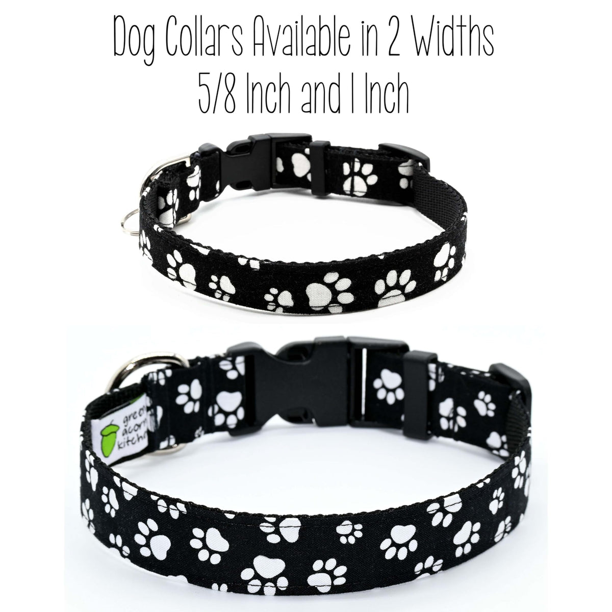 Black Paw Prints Dog Collar - Black With White Paw Prints - 5 Sizes - 5/8 Or 1 Inch Wide - Handmade By Green Acorn Kitchen (Larg