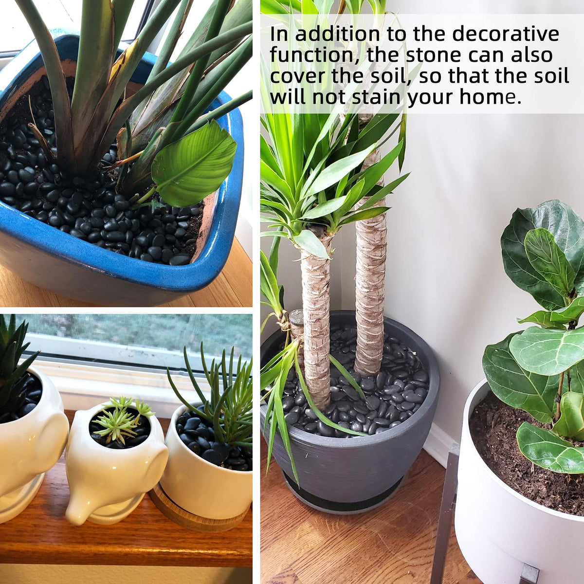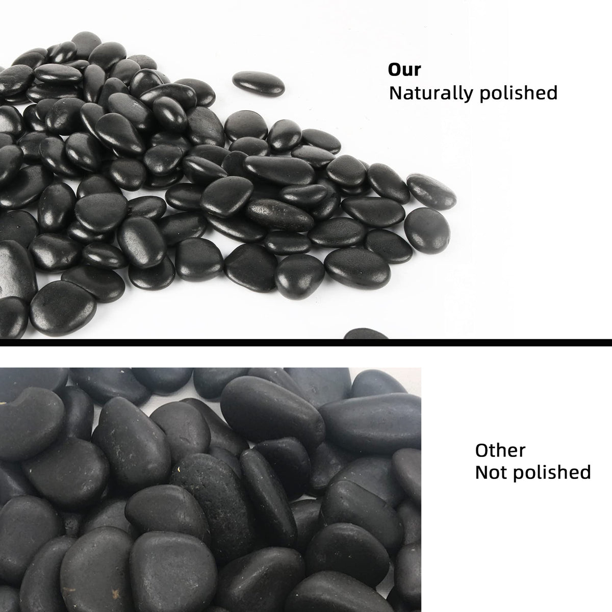 Introducing our high-quality Black Pebbles for Plants, an excellent choice for enhancing the aesthetic appeal of your aquariums, terrariums, potted plants, and home decor. The polished black stones measure approximately between 1-1.5 inches, providing an ideal size for various applications. They come coated in pure paraffin wax to enhance their color and shine, adding a touch of elegance to your space. Perfect for succulent containers, cactus, bonsai, landscape, vase filler, and creative interior and exterior design. With a weight of 1.8 pounds, this 1.8lb Bulk Bag Aquarium Gravel offers a versatile solution for your plant decor needs. Experience the difference with our quality products and efficient after-sales service.