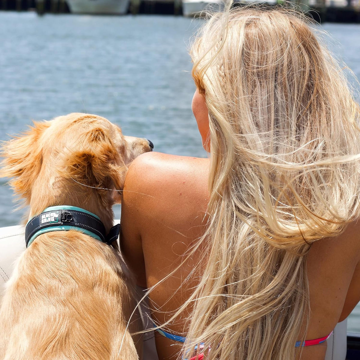 Black Rhino - The Comfort Collar Ultra Soft Neoprene Padded Dog Collar For All Breeds - Heavy Duty Adjustable Reflective Weatherproof (Medium, Aqua/Grey)
