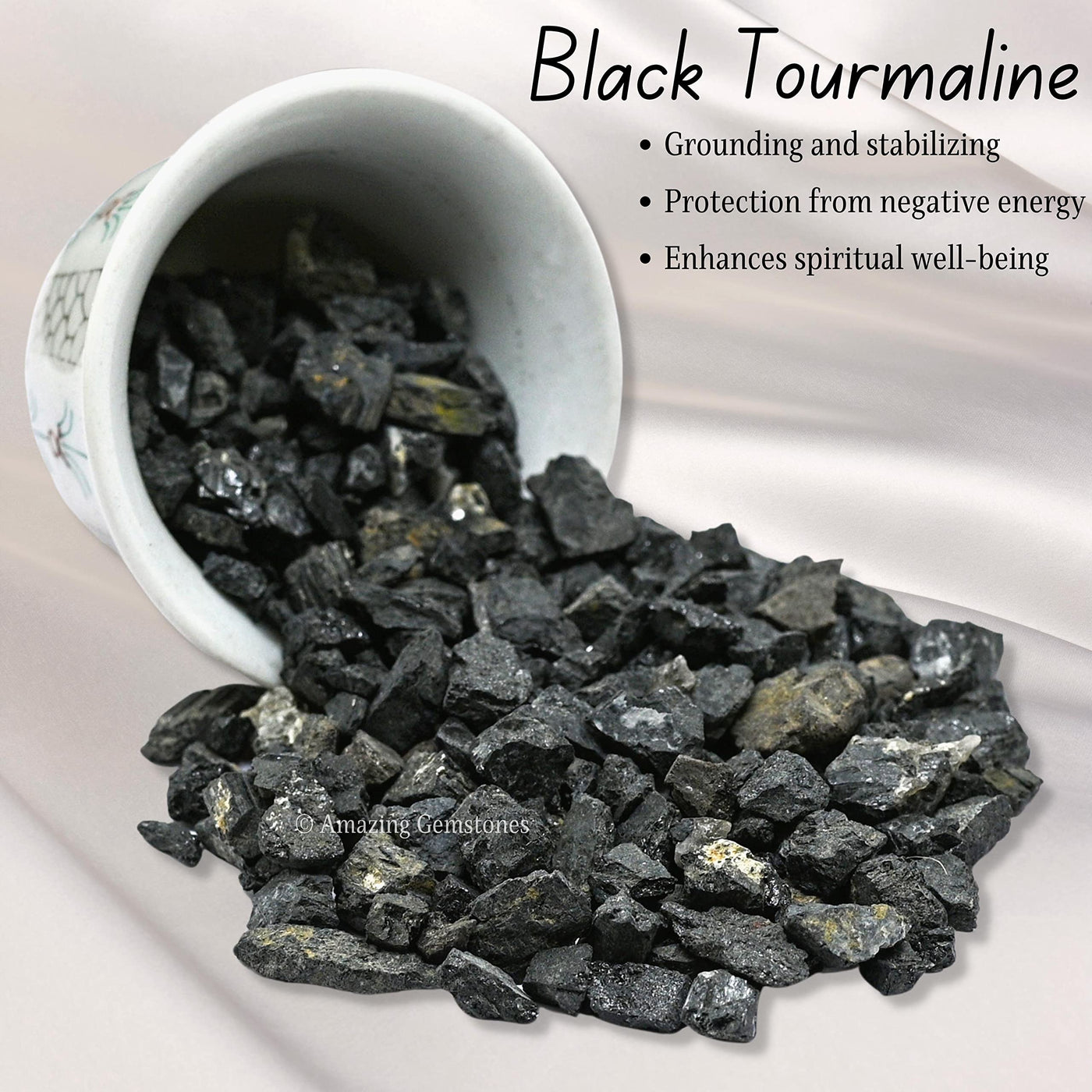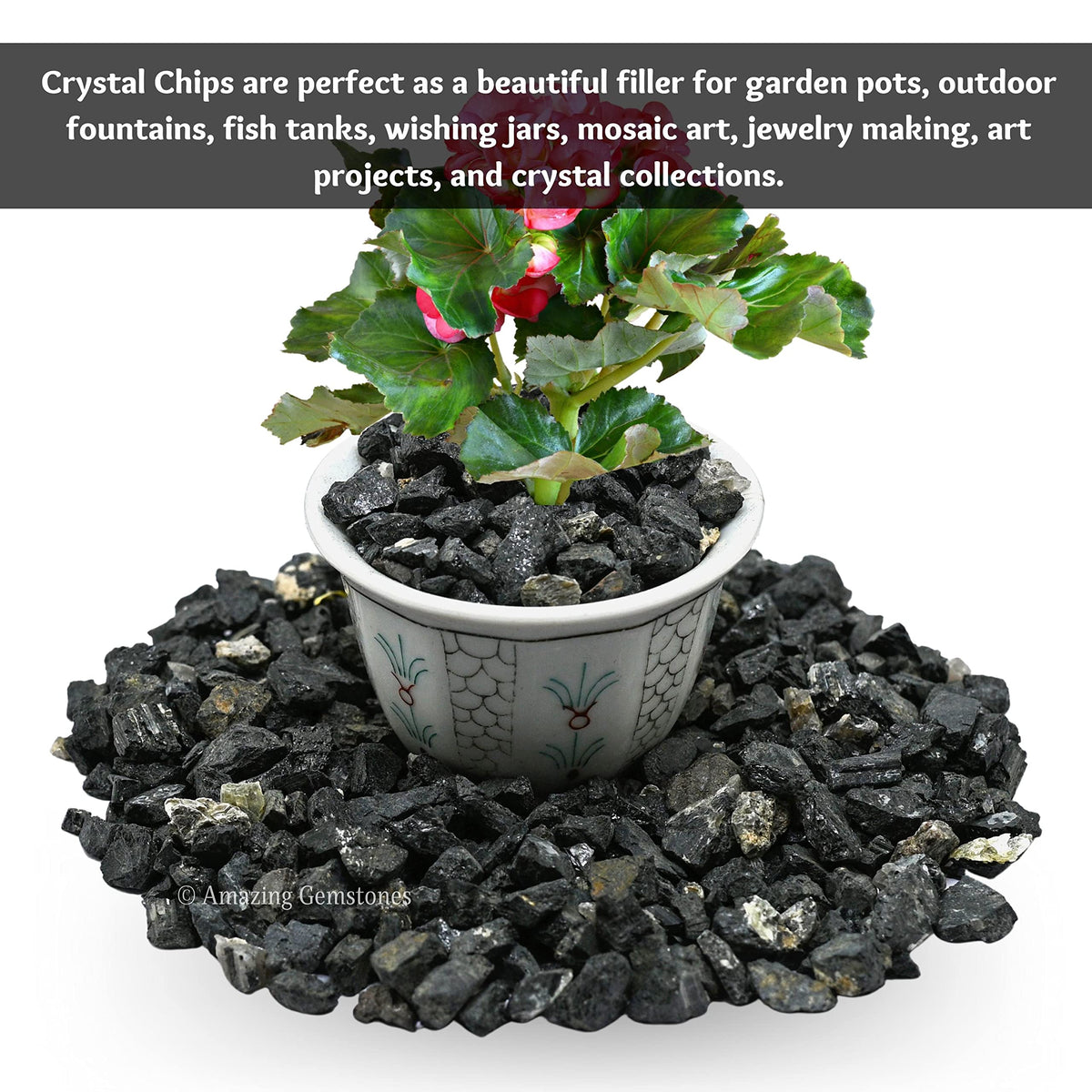 Black Tourmaline Crystal Chips Aquarium Gravel Rocks - Black Tourmaline Chips Bulk Fish Tank Gravel, Small Tumbled Stone Chips a
