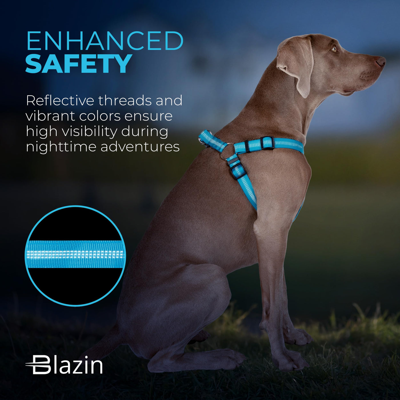 Blazin No Pull Dog Harness - Adjustable Step-In Reflective Nylon Vest Harness - Neoprene Padded For Extra Comfort (Small, Blue)