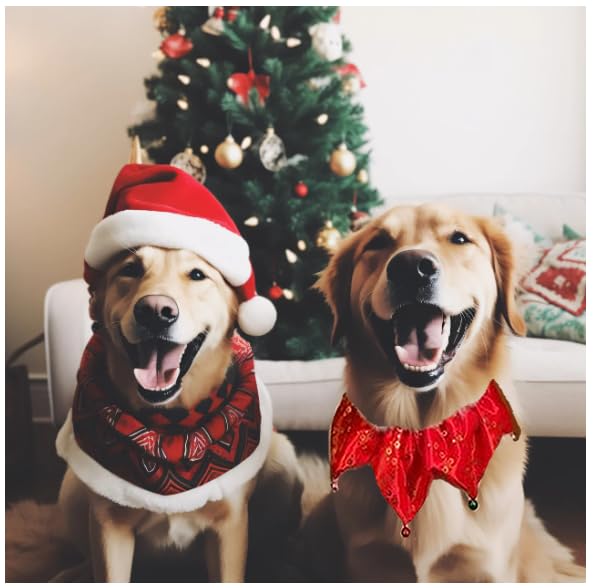 Bling Pet Dog Christmas Collar, Jingle Bell Dog Collar Christmas, Pet Holiday Accessories Xms Dog Bandana For Girl Boy With Six Bells, Large Red