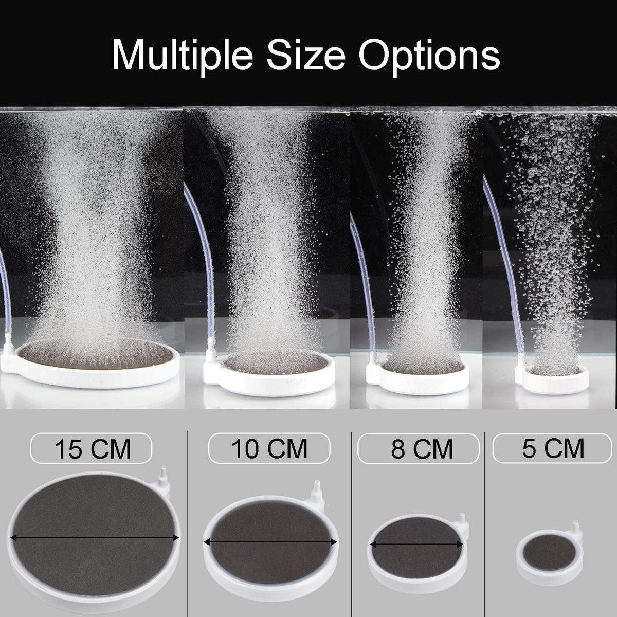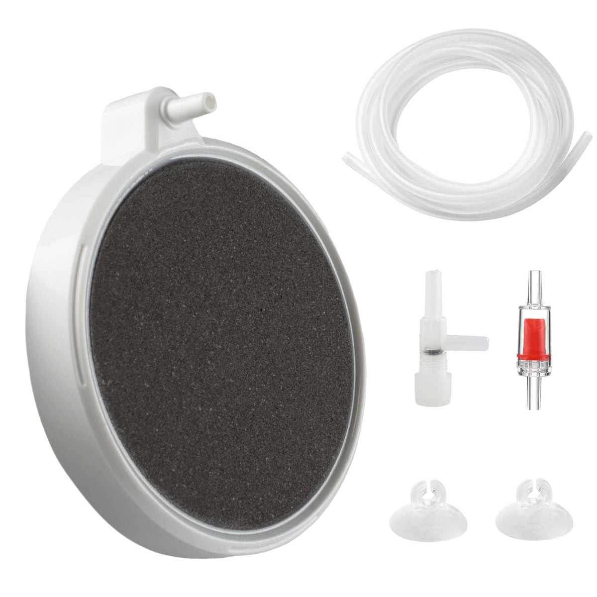 Quiet Tiny Nano Bubbles: The oxygen stone refines the air output from the air pump into fine gas bubbles, making the bubbles smaller and denser. This increases the contact surface area and exchange rate between air and water, providing ample oxygen for the fish without generating excessive noise | 4 Inch Air Diffuser Area: recommended air pump power 3w-8w, suitable for freshwater and saltwater aquariums ranging from 35 to 100 gallons. Note: If the water is deeper, you may need to choose a higher-powered air pump to ensure optimal performance (air pump are not included) | High Dissolved Oxygen Rate: This air stone is sintered at high temperature, release smaller, denser, and more uniform bubbles, effectively increasing oxygen levels while reducing carbon dioxide levels in aquariums, fish tanks, and hydroponic systems, and raising the pH value | Dirt-Resistant for Long-Term Use: It is easy to clean and can be used for a long time and has better dissolved oxygen effect. When the small bubble burst into the water, the sound is super quiet (Note: regular cleaning helps to ensure optimal performance.) | Great Accessories for Air Pump: this aquarium air stone kit includes a 4 inch Nano Air Disk Stone, 1 Control Valve, 2 Suction Cups, 1 T-Shaped Connector and a 2m (78.2 Inch) Airline Tubing. Notice: the air pump is not included