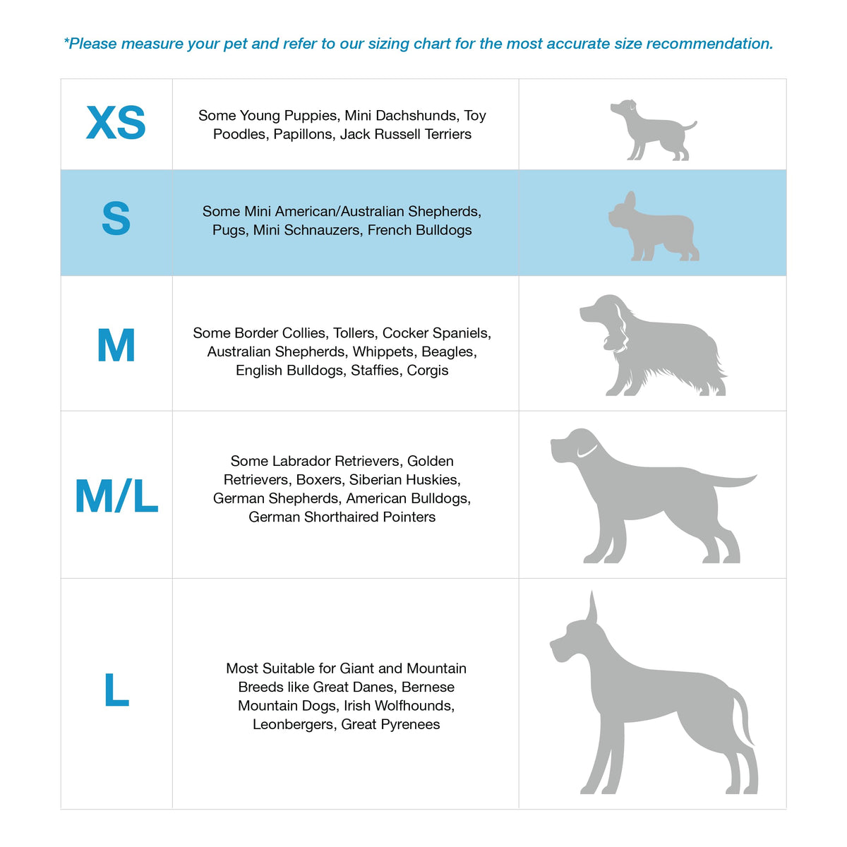 Q: What size Blue-9 Buckle-Neck Balance Harness should I choose for my dog?A: To determine the right size for your dog, refer to the size chart provided in the product images. Measure around your dog's ribcage, approximately 2 inches behind their elbow, to find the best fit. The Small size accommodates ribcages between 17.5" and 25.5".