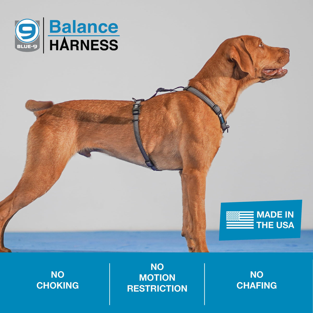Dogs Live In Our World, And It Is Our Job To Make Sure They Feel Secure, Loved, And Comfortable To Ensure They Succeed. Our Buckle-Neck Balance Harness Was Developed By Dog Training Experts With That In Mind. The Six-Points Of Adjustment On Our Harness Allow You To Find The Perfect Fit For Your Dog And Effectively Stop Them From Pulling During Walks. Its Made From Lightweight, Soft-Touch Nylon With Reflective 3M Stitching To Ensure Your Pup Is More Visible In The Dark. It Runs Slightly Large To Ensure It Can Be Adjusted To Fit Your Dog Like A Glove. It Is Important To Use The Measurements On Our Size Chart Before Selecting The Best Size. The Innovative Buckle-Neck Design Makes It Easy To Get On And Off, But You Dont Have To Readjust It Every Time You Put It Back On. It Also Acts As A Security Release; If Your Dog Ever Gets Stuck While Hiking, You Unclip The Buckle To Free Them. It Is Made Of Washable Nylon That Is Soft And Durable. Due To Its Innovative Design, It Wont Rub Or Cause Any Chafing Either. It Helps Prevent Injuries From Walking With A Bad Gait, So Their Mobility Is Never Restricted. Each Of Our Balance Harnesses Comes With Postcards Featuring Fit And Training Tips And A Qr Code For Helpful Videos. It Is No Wonder Why The Balance Harness Is Veterinarian-Approved** And Top-Rated By Business Insider***. Blue-9 Is One Brand To Meet All Your Training Goals. We Have Grown To Become A Trusted Partner Of Professional Trainers, Veterinarians, And Competition Pros. Our Goal Is To Provide Products That Make It Easier For Dog Owners Around The World To Connect With Their Pets. *Manufactured By Blue-9, Maquoketa, Ia, 1.11.23 **Vet Approved By Dr. Chris Zink, 8.2.23 ***Top-Rated No-Pull Harness By Business Insider Journal, Published 6.22.23 Top-Ranked By Professional Dog Trainers, Business Insider Journal, 6.22.23