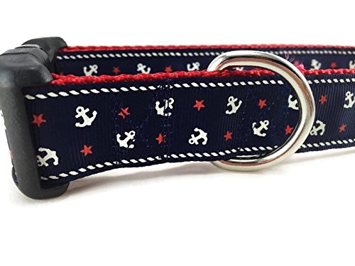 Blue Anchor Dog Collar, Caninedesign, Navy, Sailing, 1 Inch Wide, Adjustable, Nylon, Medium And Large (Medium 13-19')