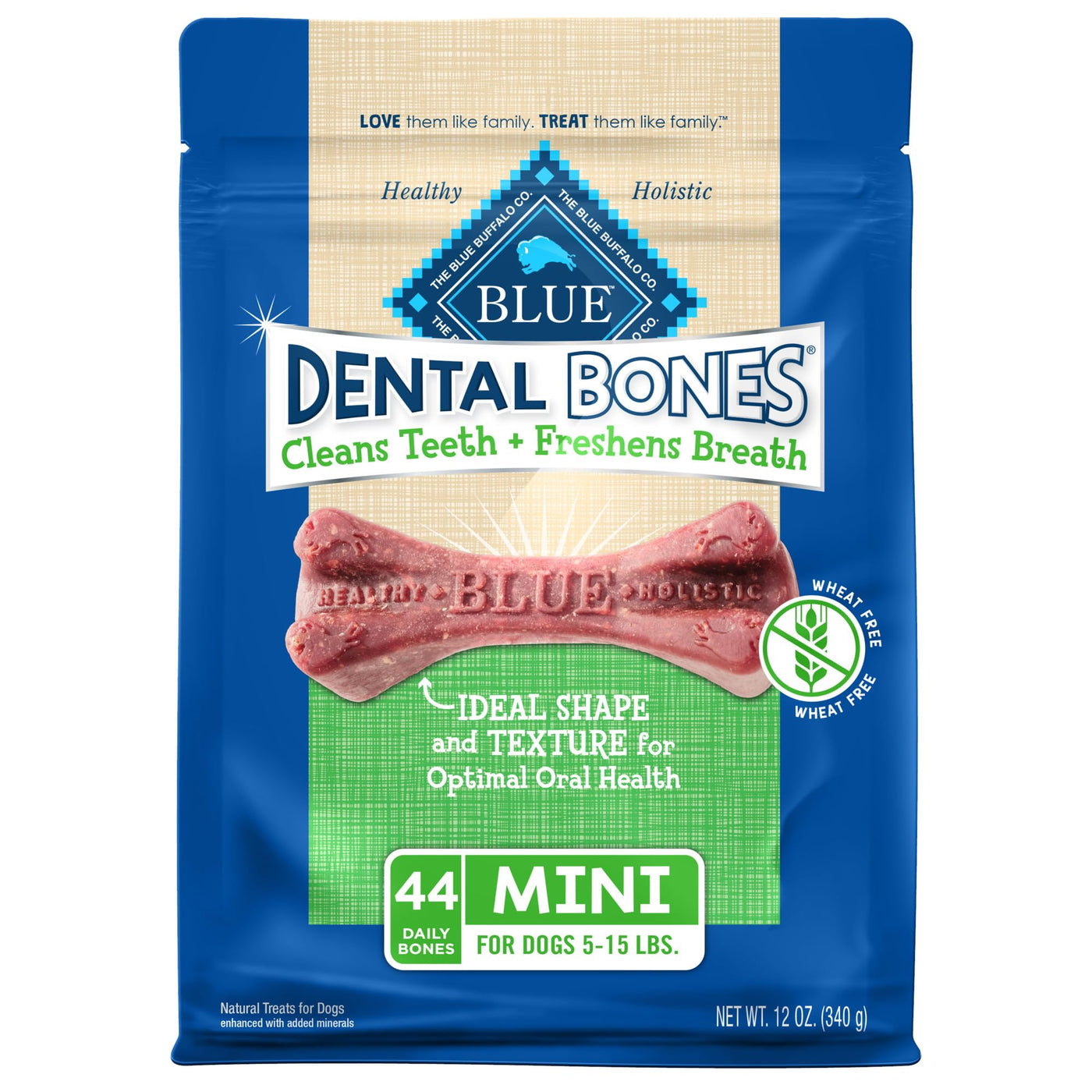 Blue Buffalo Dental Bones Mini Natural Dental Chew Dog Treats, (5-15 lbs) 12-oz Bag
