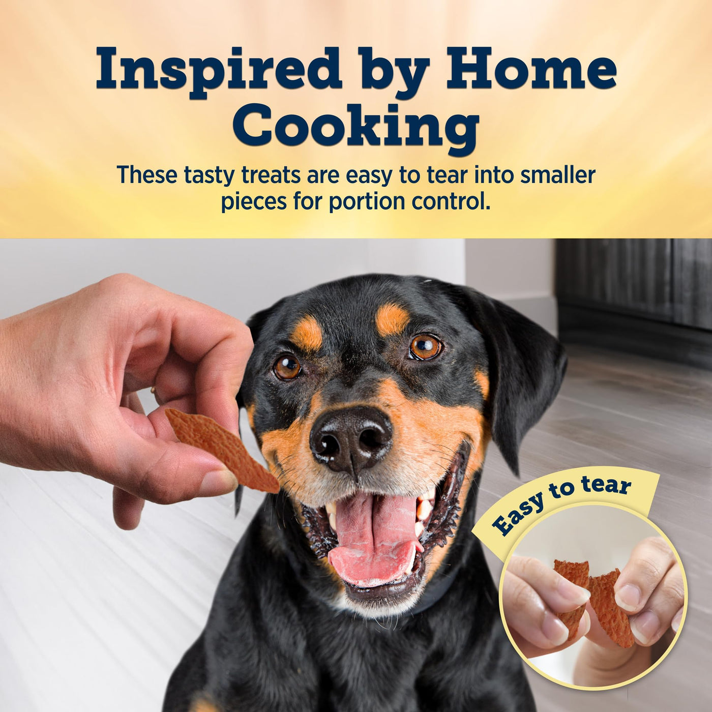 Give your dog the taste of real beef with BLUE True Chews Premium Jerky Cuts Natural Dog Treats. Made with real USA beef as the first ingredient, these tender dog treats are easy to tear into smaller pieces, so theyre great for dogs of all breed sizes and ages. And like all Blue Buffalo dog treats, these treats for dogs never contain chicken (or poultry) by-product meals, corn, wheat, soy, artificial flavors, or preservatives. Watch their tail wag when you reward them with BLUE True Chews Premium Jerky Cuts Steak Dog Treats.