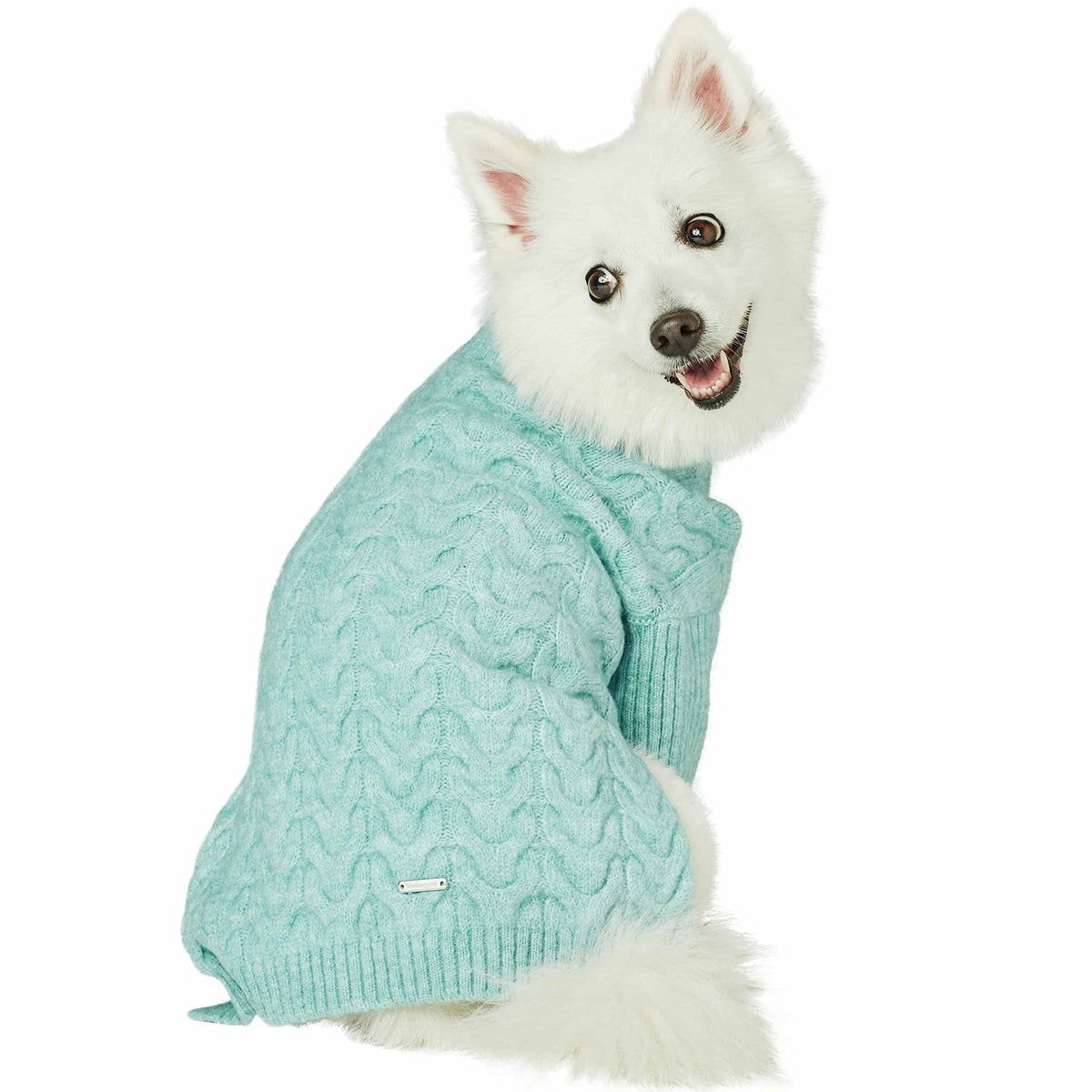 Blueberry Pet 2023 New Classic Fuzzy Textured Knit Pullover Turtle-Neck Dog Sweater In Heathered Jade, Back Length 22', Pack Of 1 Clothes For Dogs