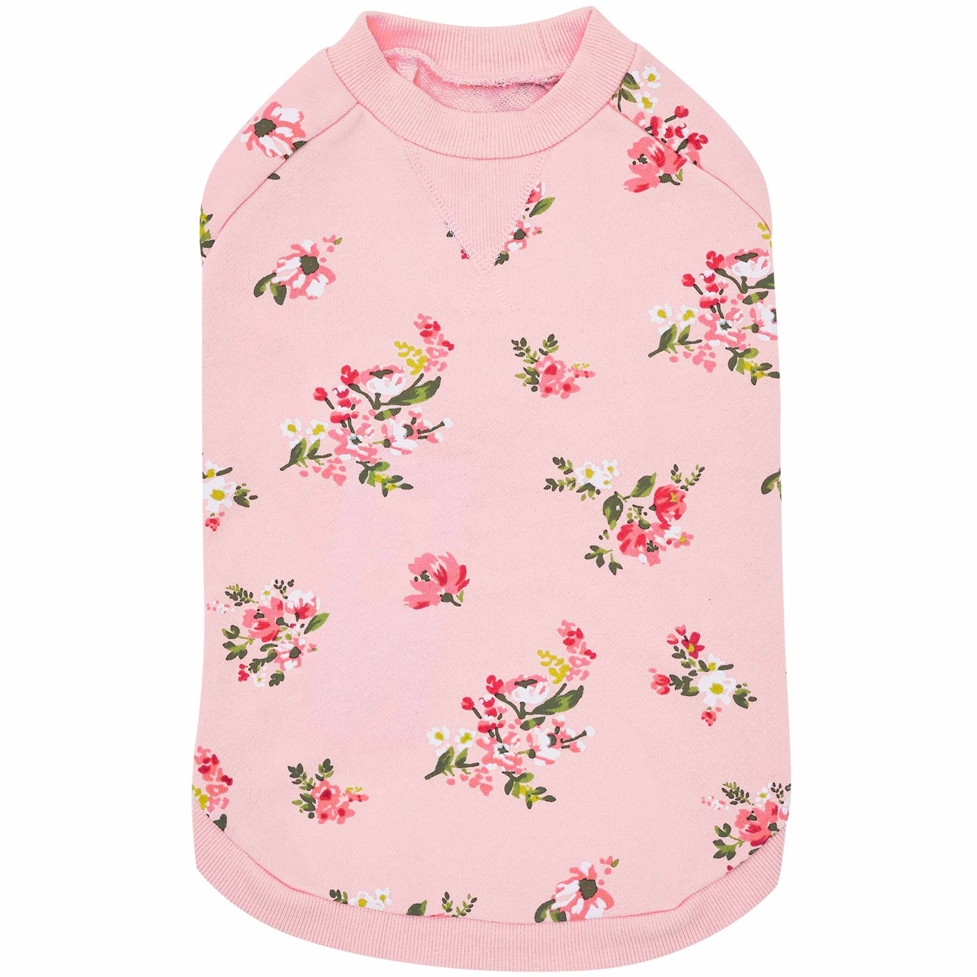 Blueberry Pet 2023 New Spring Scent Inspired Rose Flower Crew-Neck Pullover Dog Sweatshirt In Baby Pink, Back Length 22'', Pack