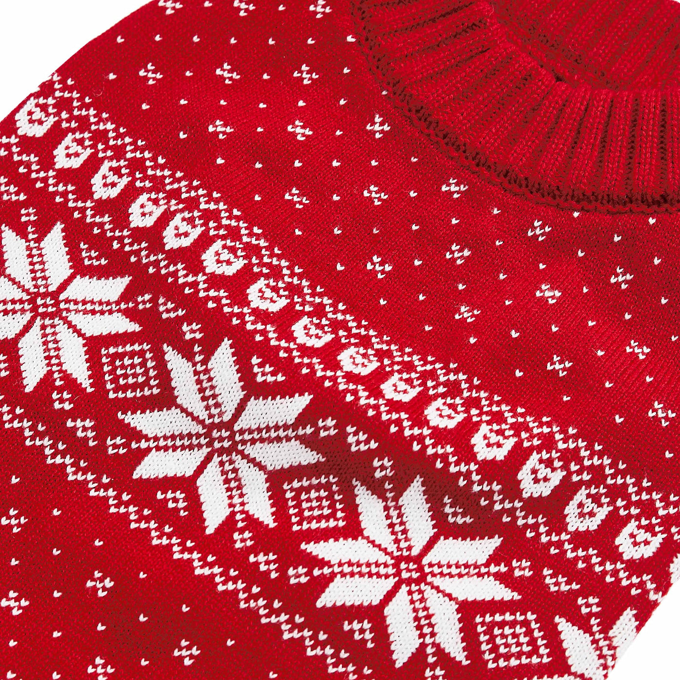 One undeniable essential for cooler months - we can NEVER have enough Fair Isle sweaters! No need to rationalize this craze over Fair Isle patterns because holiday season is not completed without this flattering dog sweater! It is a classic mockneck sweater made in the festive pattern of snowflakes, chevrons and other iconic shapes. Colors of true red and white surely bring out the best of holiday season! This sweater is so popular that we made multiple versions. Check out our holiday collection and you will find the right one for you!