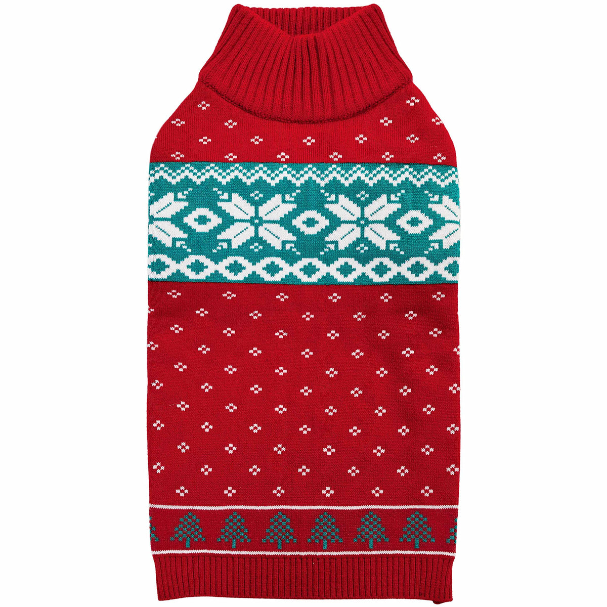 Blueberry Pet Christmas Tree And Snowflake Dog Sweater In Festive Red, Back Length 12', Pack Of 1 Clothes For Dogs