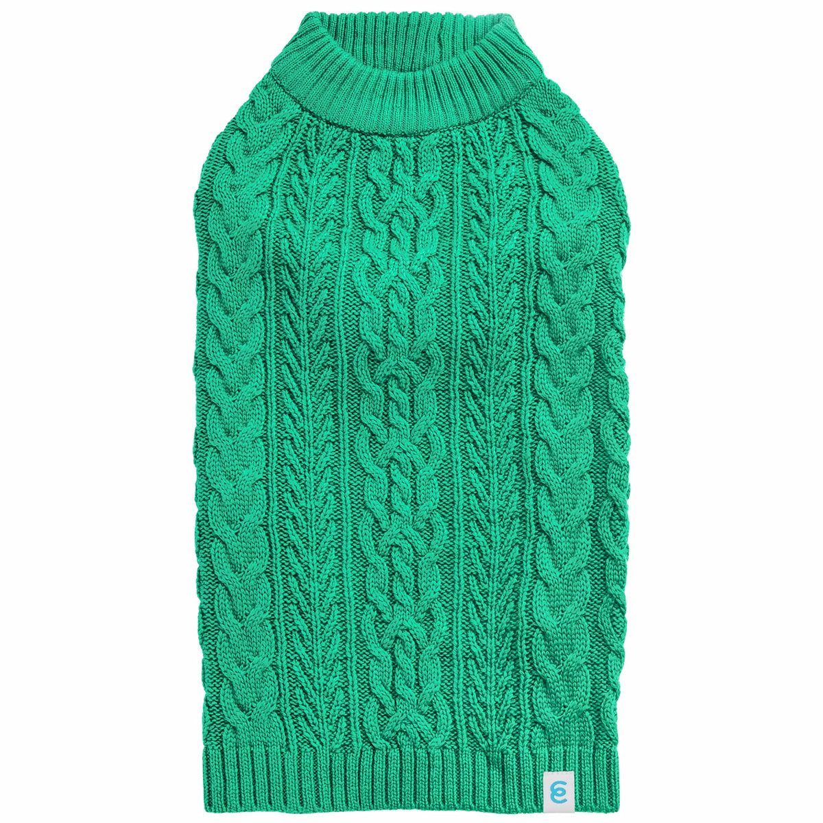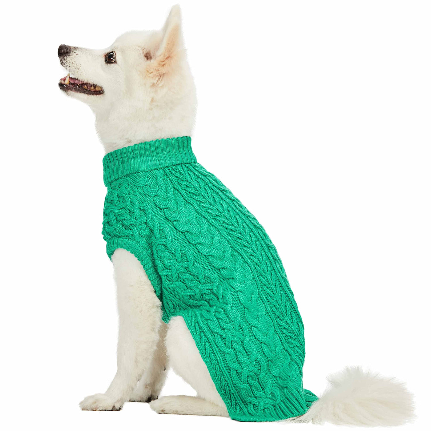 Blueberry Pet Classic Dog Sweater Wool Blend Cable Knit Pullover Crewneck Winter Clothes In Emerald, Back Length 20', Large Warm Coat For Pet