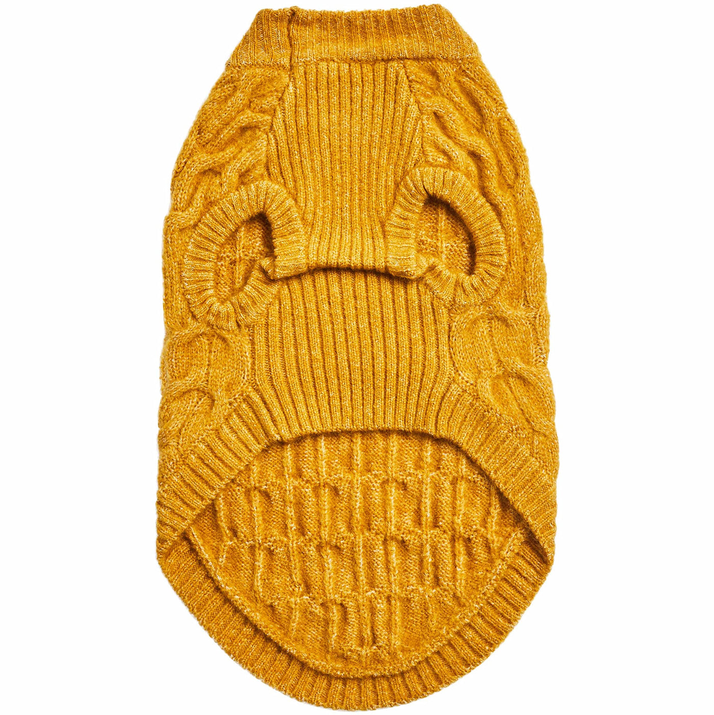 Blueberry Pet Classic Fuzzy Textured Knit Pullover Crew-Neck Dog Sweater In Mustard Yellow, Back Length 18', Pack Of 1 Clothes For Dogs