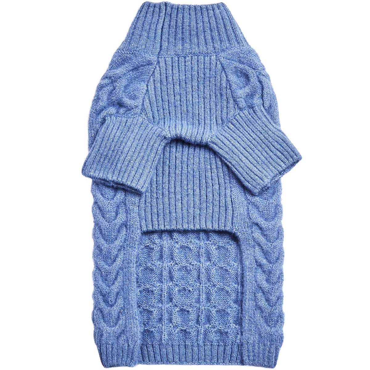 Loved by fans around the world, cable knitting or cable braids are one of the simplest, yet most popular knitting techniques. A modern mix of cable-knit patterns is a great presentation of our in-house designers' take on the classy theme. Super soft and undeniably luxurious, this awesome sweater is made from premium fabric for exceptional warmth without the weight. It also features longer sleeves and cozy mockneck with a straight hem which hits low on your furry friend's back. We highly recommend this long-sleeve, high neckline and longer hem dog sweater during cooler months!
