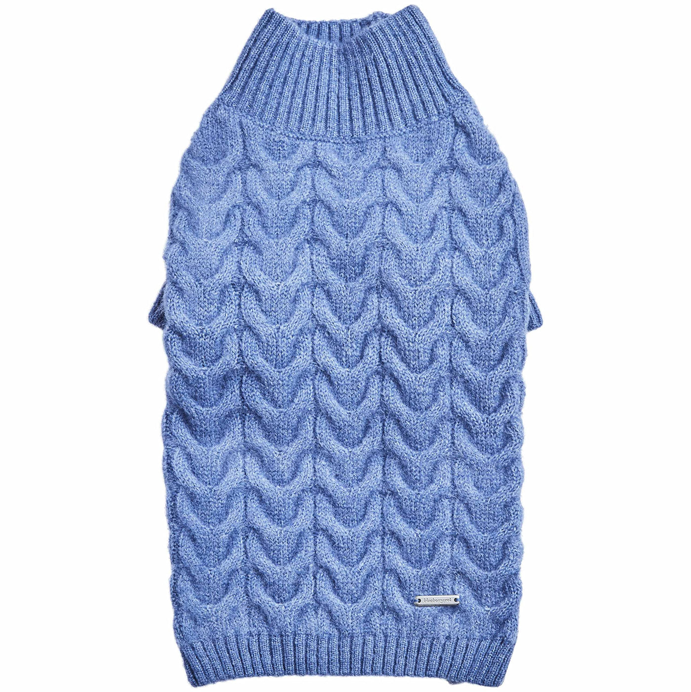 Blueberry Pet Classic Fuzzy Textured Knit Pullover Turtle-Neck Dog Sweater In Heather Blue, Back Length 16', Pack Of 1 Clothes For Dogs