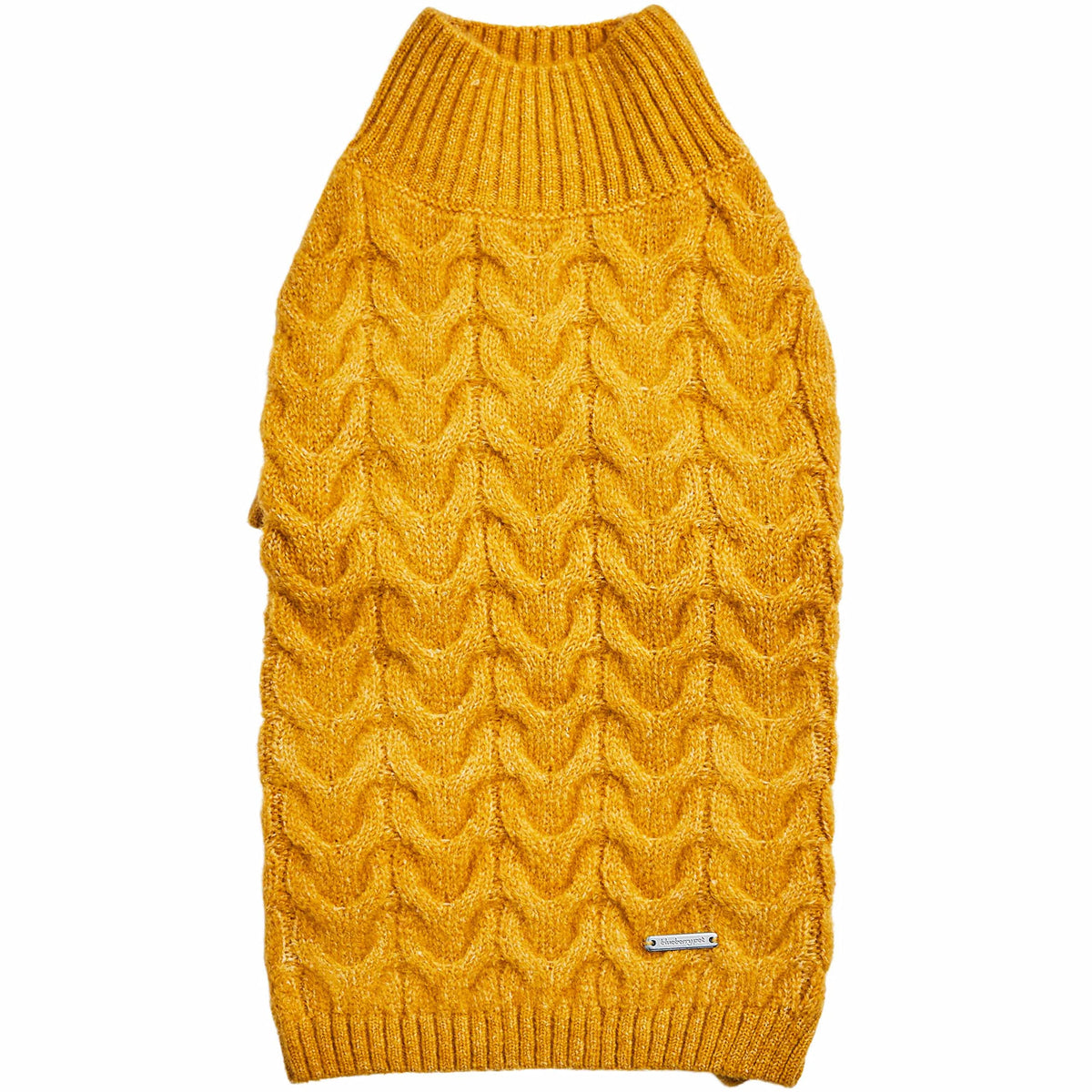 Blueberry Pet Classic Fuzzy Textured Knit Pullover Turtle-Neck Dog Sweater In Mustard Yellow, Back Length 16', Pack Of 1 Clothes For Dogs