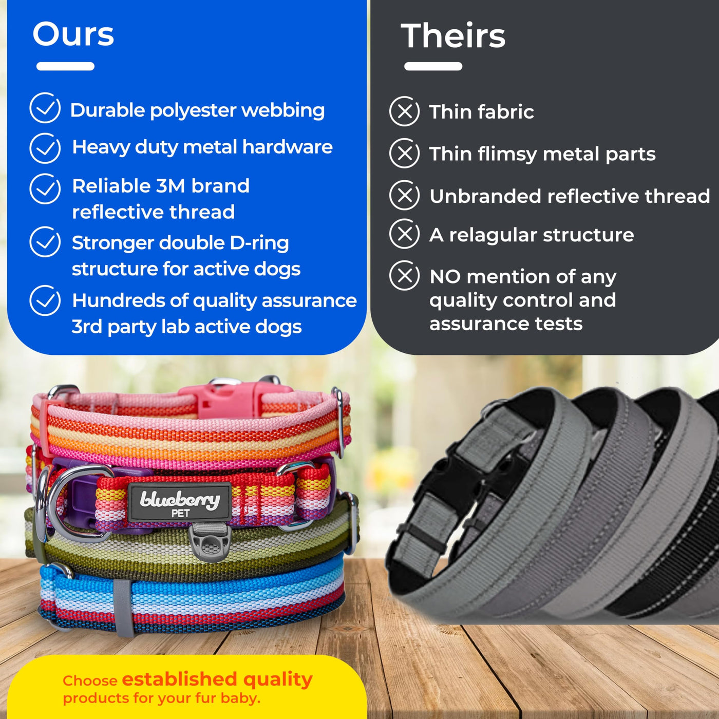Blueberry Pet Dual D-Ring Safety Dog Collar | Adjustable Nylon Collar with Multicolor Stripes in Mixed Tone Rainbow Color| Durab