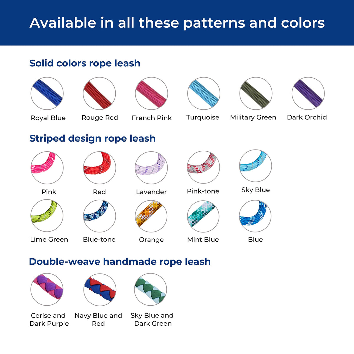 Perfect for outdoor sports lovers Blueberry Pets rope dog leash is simply awesome for walking hiking and training sessions This diagonal-striped leash is made of heavy-duty webbing for added strength and comes with a comfy neoprene handle It is crafted in a simple style and offers more control with the rope structure Simple and sleek are the ultimate goal for this functional leash