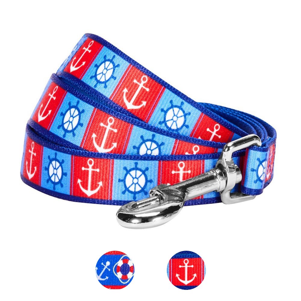 Blueberry Pet Essentials 2 Patterns Classy Bon Voyage Nautical Ocean Harbor Designer Dog Leash, 5 Ft X 5/8'', Small, Durable Lea
