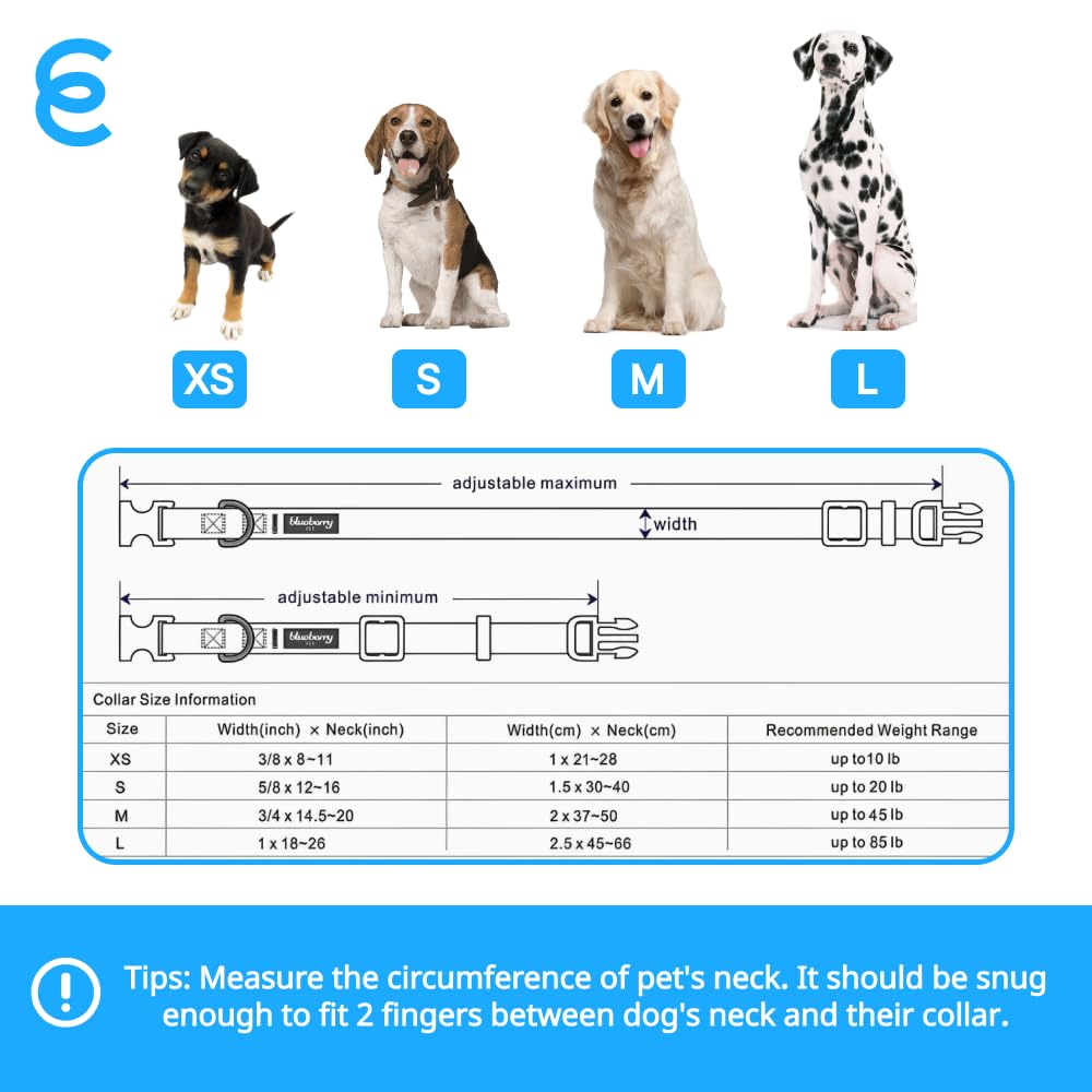 Inspired by the warm weather, Blueberry Pets new classic collection is perfect for everyday wear. Elegant and simple, this classic solid color collar is made to show off your dogs unique style all year long. With the heavy duty buckles and D-ring, this durable dog collar is made to last long. The collar is suitable for most kinds of breed. Small breeds like poodles, yorkshire terriers, corgis, shih Tzu, spaniels, pugs, chihuahuas, maltese, russell terriers etc.; medium breeds like french bulldogs, bulldogs, beagles, dachshunds, collies, bull terriers, Australian shepherds, boxers etc.; large breeds like labrador, labrador retrievers, german shepherd, golden retrievers, rottweilers, huskies, great danes etc.