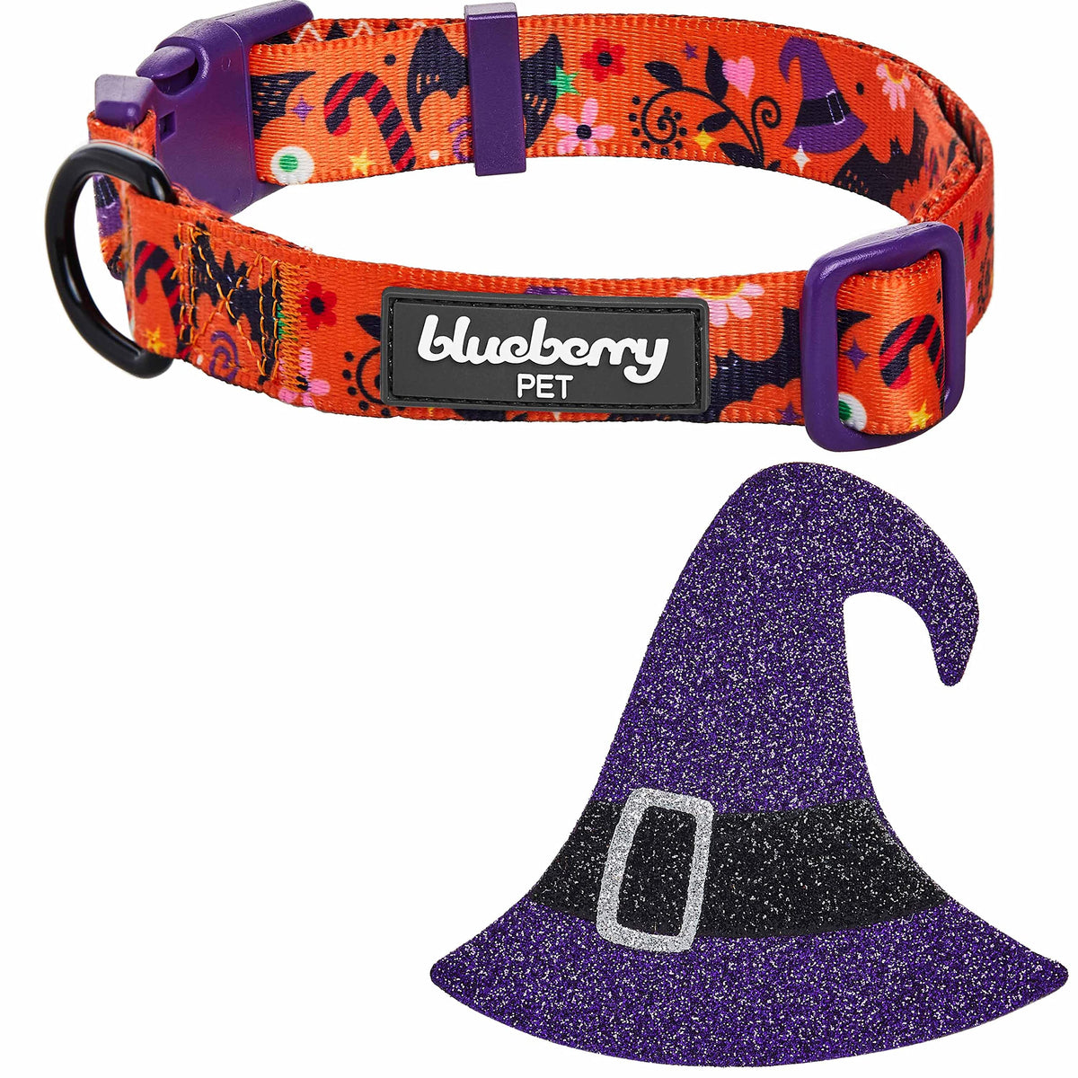 Blueberry Pet Halloween Witch Hat Adjustable Dog Collar With Detachable Glitter Accessory, Small, Neck 12'-16'