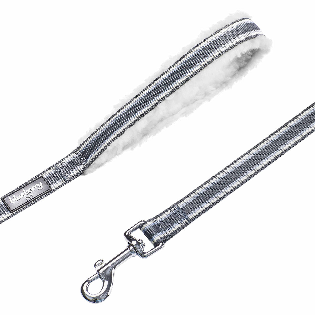 Blueberry Pet Multi-Colored Stripe Fleece Padded Dog Leash With Soft & Comfortable Handle, 5 Ft X 3/4', Grey, Medium, Leashes For Dogs