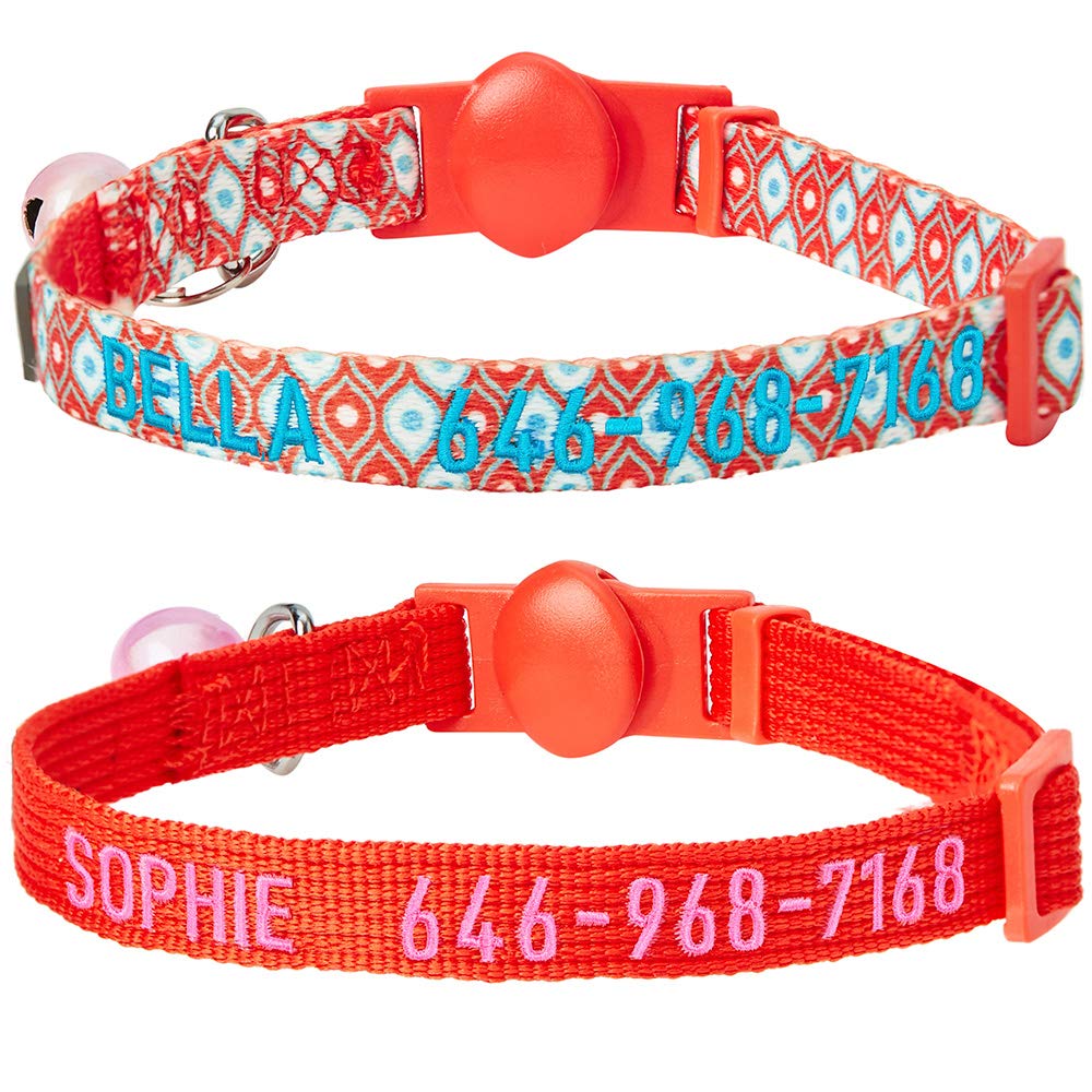 Blueberry Pet Pack Of 2 Personalized Perfect Orange Cat Collars With Bell & Detachable Flower, Adjustable Breakaway Id Collars E