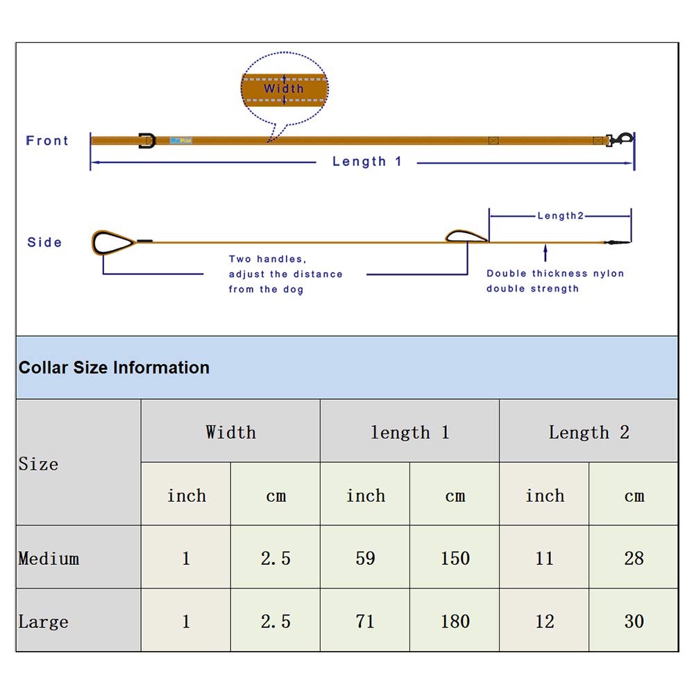 Size: Medium 5Ft Long 1'' Wide Large 6Ft Long 1'' Wide Traffic Padded Two Handle Heavy Duty Reflective Double Handles Lead For Control Safety Training Leashes For Large Dogs Or Medium Dogs Dual Handles Leads.