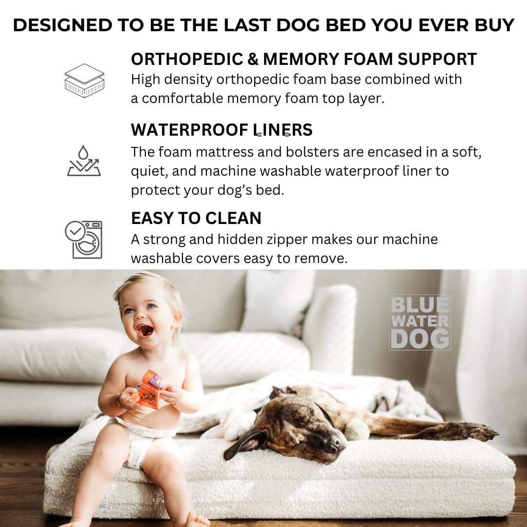 Bluewater Dog Luxury Boucle Orthopedic Memory Foam Dog Bed With Waterproof Liner And Machine Washable Cover With Ykk Zippers (La