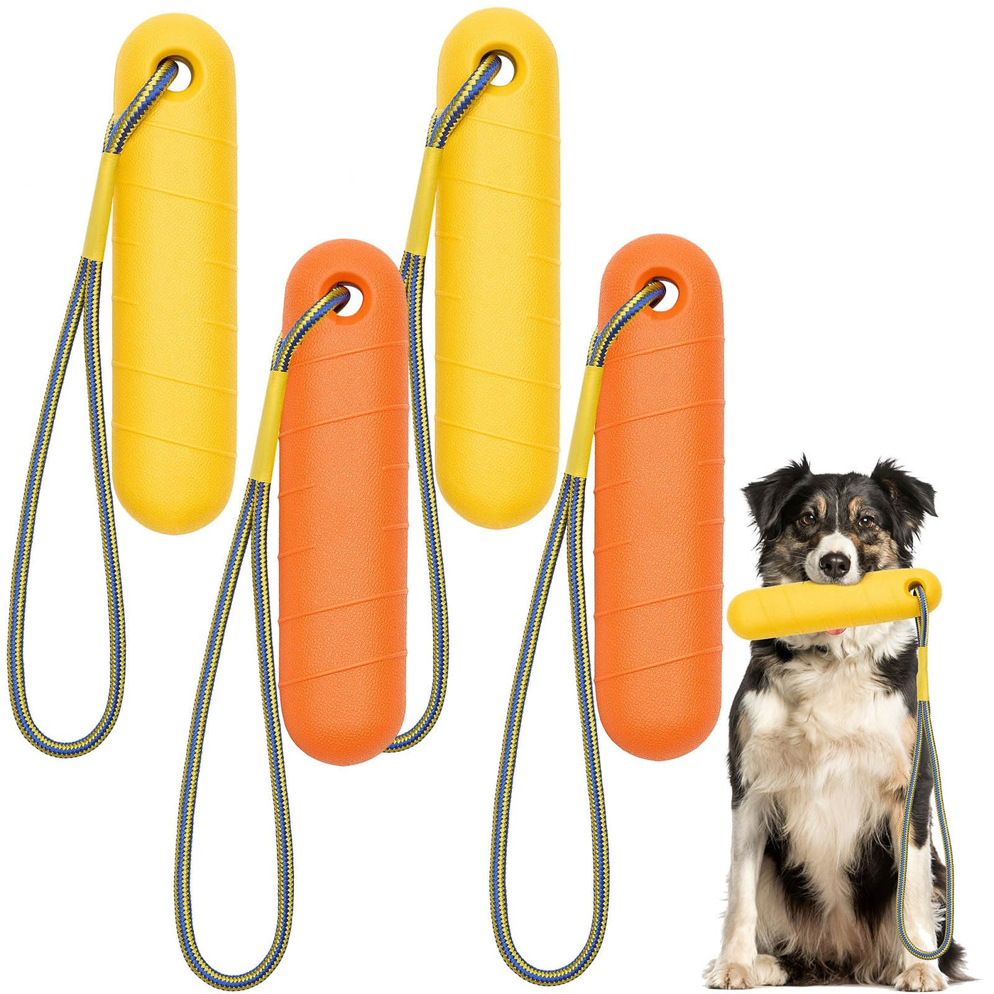Blueweenly 4 Pcs Interactive Dog Pool Toys With Throw Rope 8.66 X 2 Inch Fetch Training Bumpers Water Floating Toys For Outdoor