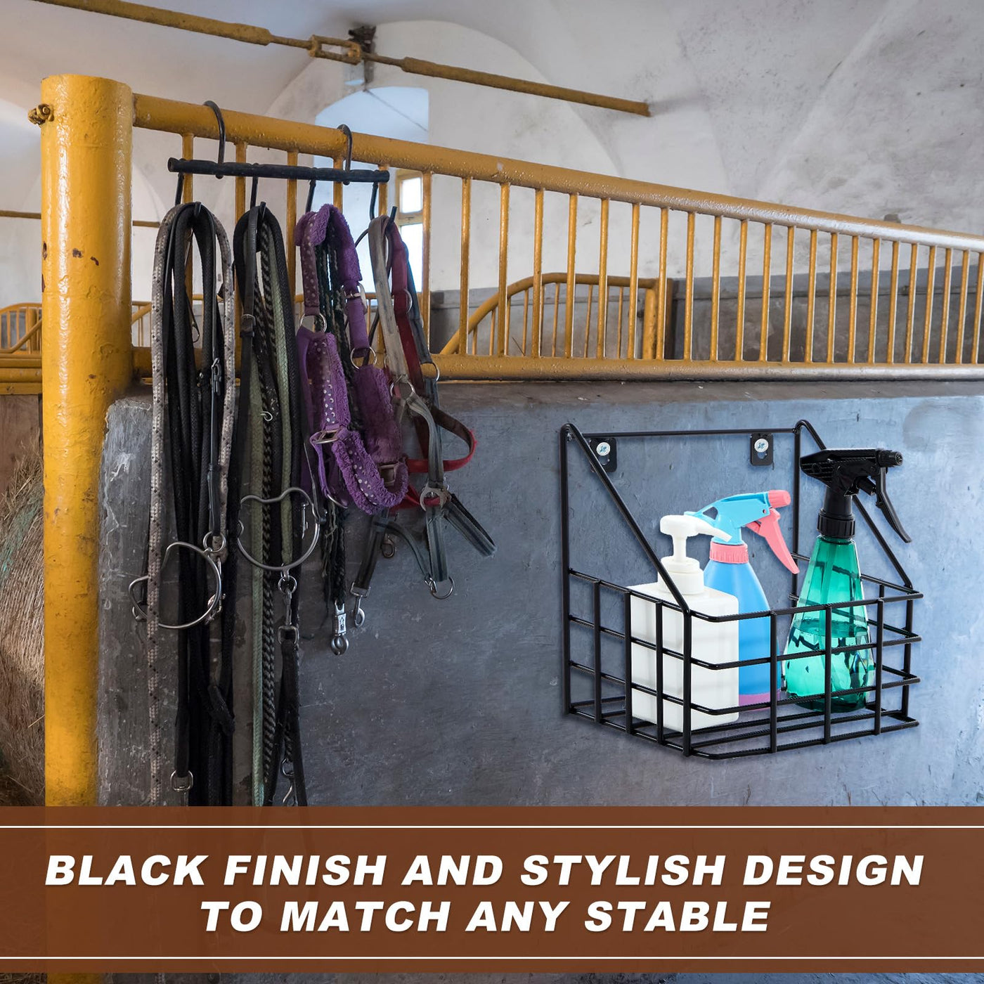Features: The package includes 1 horse tack room organization, ensuring that you have everything you need to secure and store all your horse care essentials. Start making your equine care tasks more orderly. The horse stable organizer is made of iron, ensuring long-lasting use. Its finished with a coat of black paint, giving it an elegant and timeless aesthetic that fits anywhere. Specifications: Material: iron Color: black Size: about 10.04 x 9.45 x 6.89 inches/ 25.5 x 24 x 17.5 cm Package includes: 1 x Horse stable basket organizer Notes: Manual measurement, please allow slight errors on size. The color may exist a slight difference due to different screen displays.