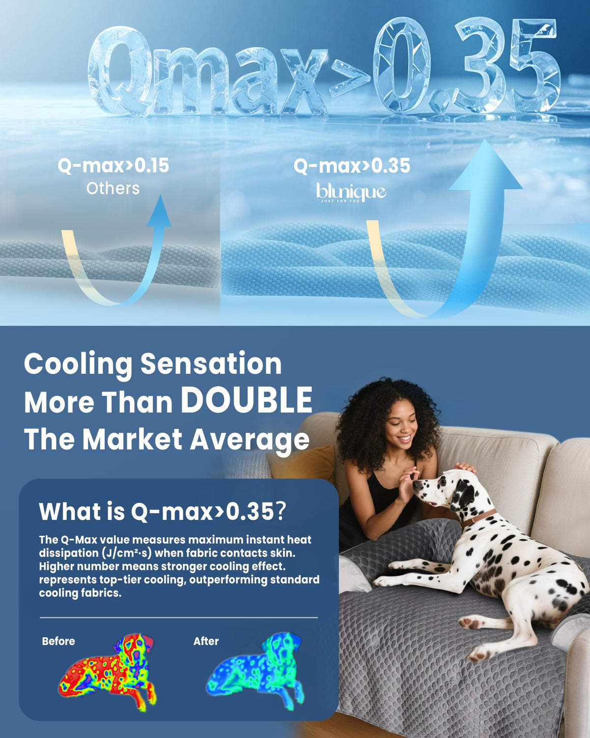 Blunique Xl Cooling Dog Bed, 45 X 37 Inch Waterproof Couch Cover For Dogs Washable, Non-Slip Bottom Self Cooling Mat For Dogs, D