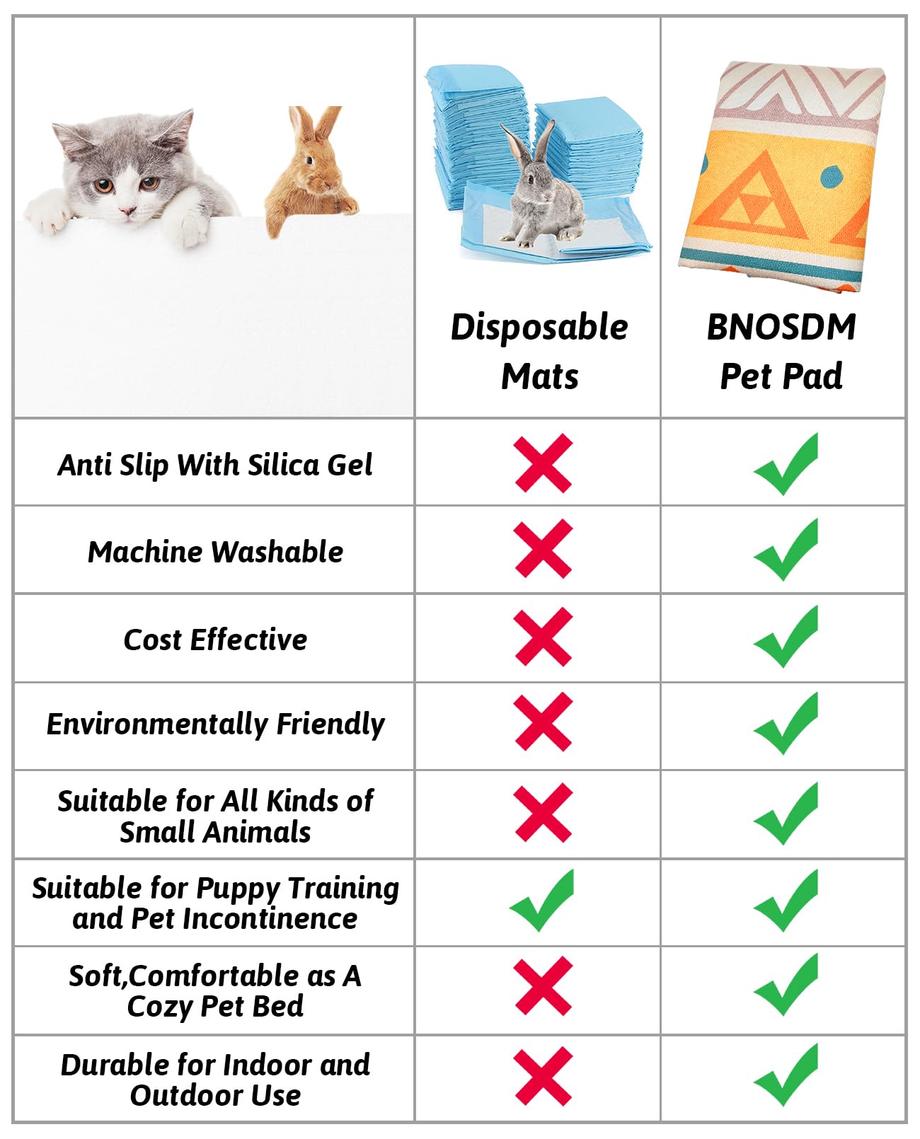 Why choose BNOSDM large washable rabbit floor mat? 1. Crystal velvet fabric, comfortable. 2. Bunny mats for cages can be used repeatedly for a long time, reducing clutter. 3. Multipurpose, can be placed at home as a training pad, pet under the pad. Lovely design The print design on the surface of the bunny cage liner for bunnies is not only beautiful and fashionable, but also convenient for you to clean up your pet's hair, hay. Anti-slip Bottom The silicone point at the bottom of the bunny mats for cage can increase the friction with the ground, prevent slipping and movement, and escort the health of the pet skeleton. Easy to clean You only need to clean up the sundries on the surface of the washable pads for rabbits and then wash it by hand or put it into the washing machine. Adding white vinegar to the cleaning process can help remove the odor, and then dry it for your pet to use. Specification Project Name: large rug for rabbits Material: crystal velvet 2 Sizes: 79 x 55 inches / 91 x 63 inches Washing method: machine wash or hand wash NOTE 1. There may be an error of 1-3 cm due to manual measurement. 2. Slight chromatic aberration may exist due to different displays.